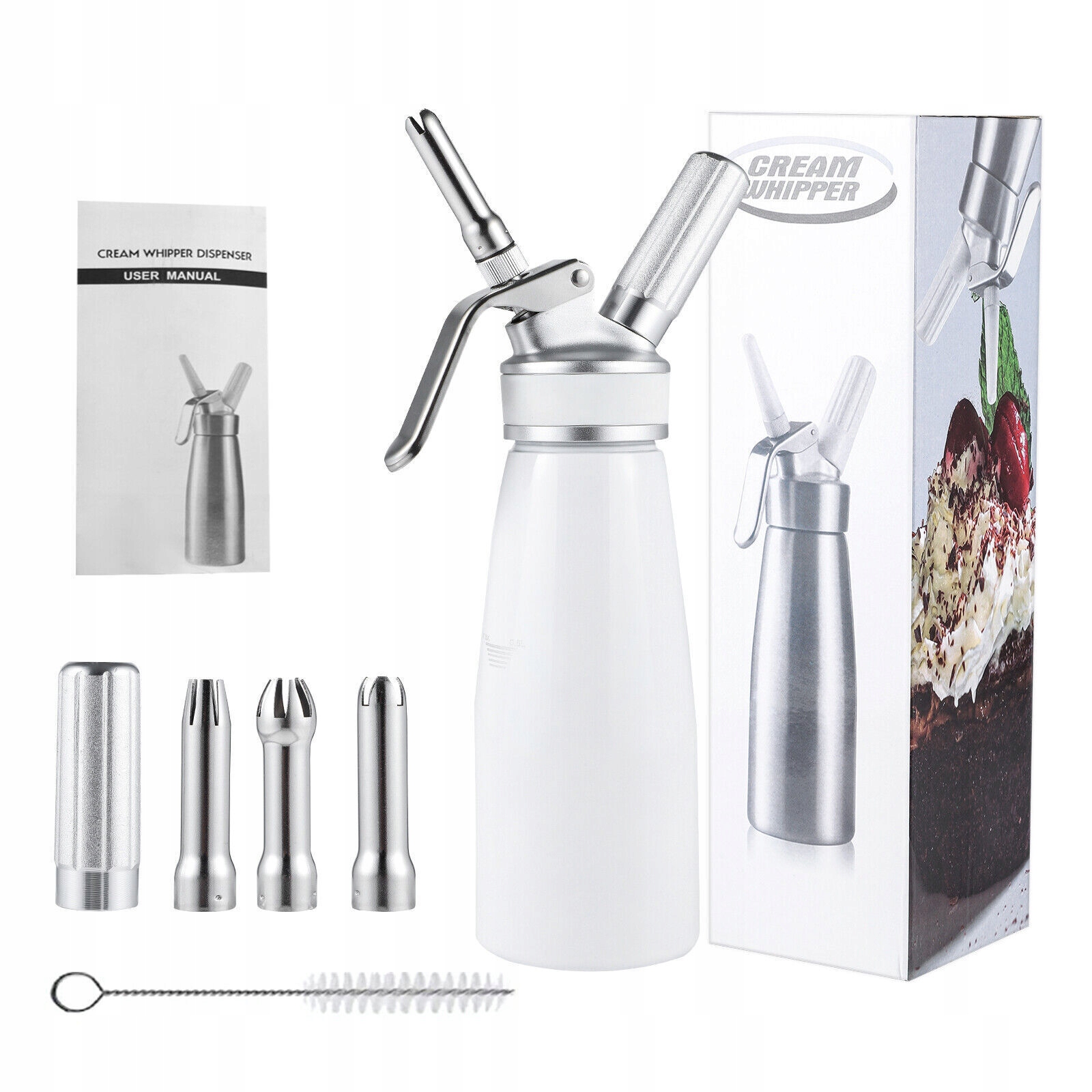 🍰🍰 Легко в использовании - благодаря нашему кремовому дозатору вы можете легко получить восхитительный крем после ожога, который идеально подходит для изготовления капучино, кремовых напитков или пирожных. Крем -дозатор работает со всеми стандартными картриджами N2O 500 мл 8 г (примечание: картриджи не включены). Идеально подходит для сливок, мороженого, глазурь, крема для торта, мягкого сыра, масла и многих других.