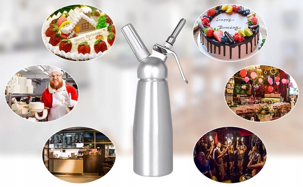 ?? Красивое украшение крема: Независимо от того, являетесь ли вы профессиональным шеф -поваром, кондитерцем или пекарем, вы можете создать красивые украшения взбитых сливок с помощью взбитого кремового сифона, украшать десерты и сделать их вкусными и красивыми.