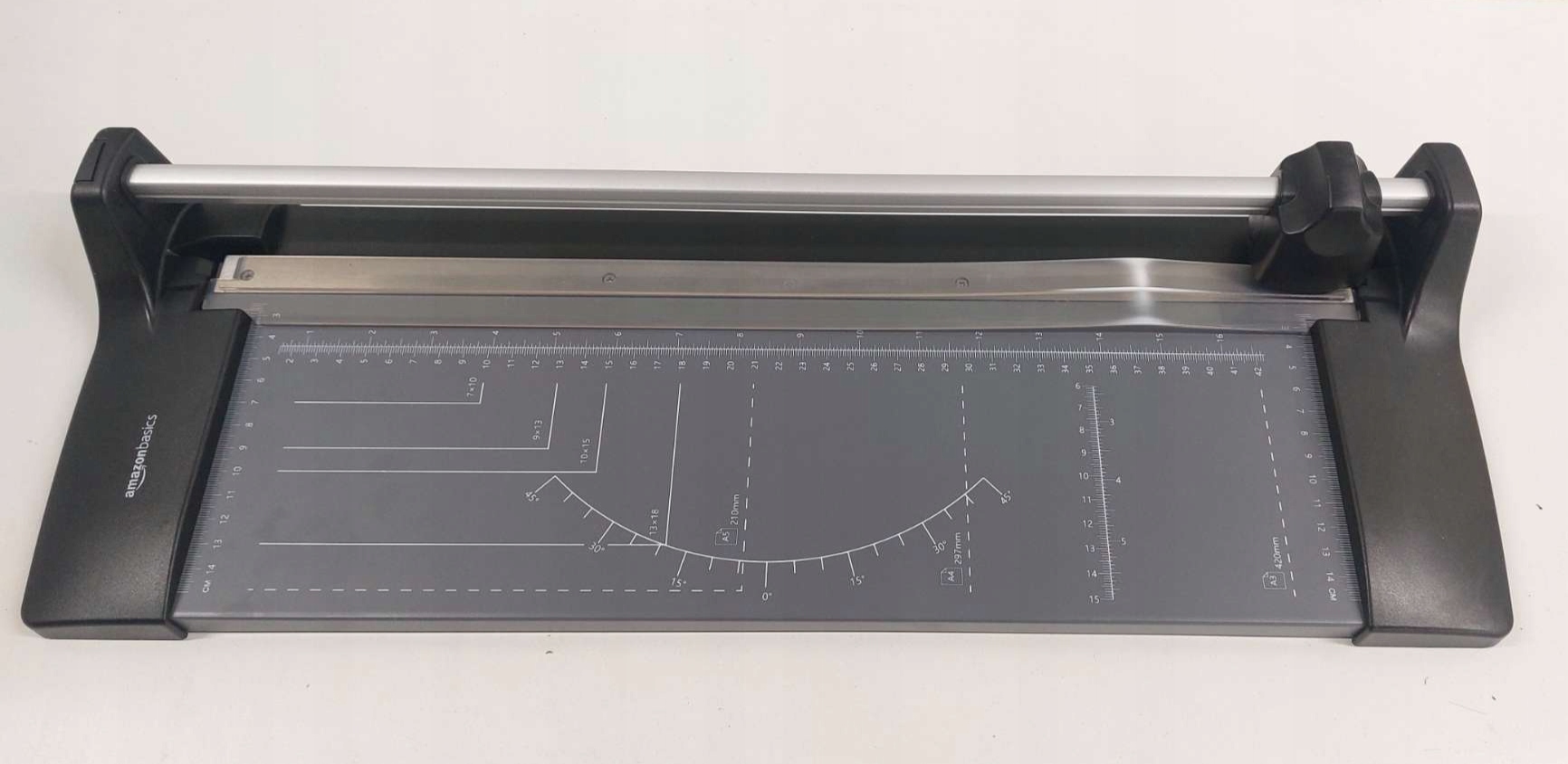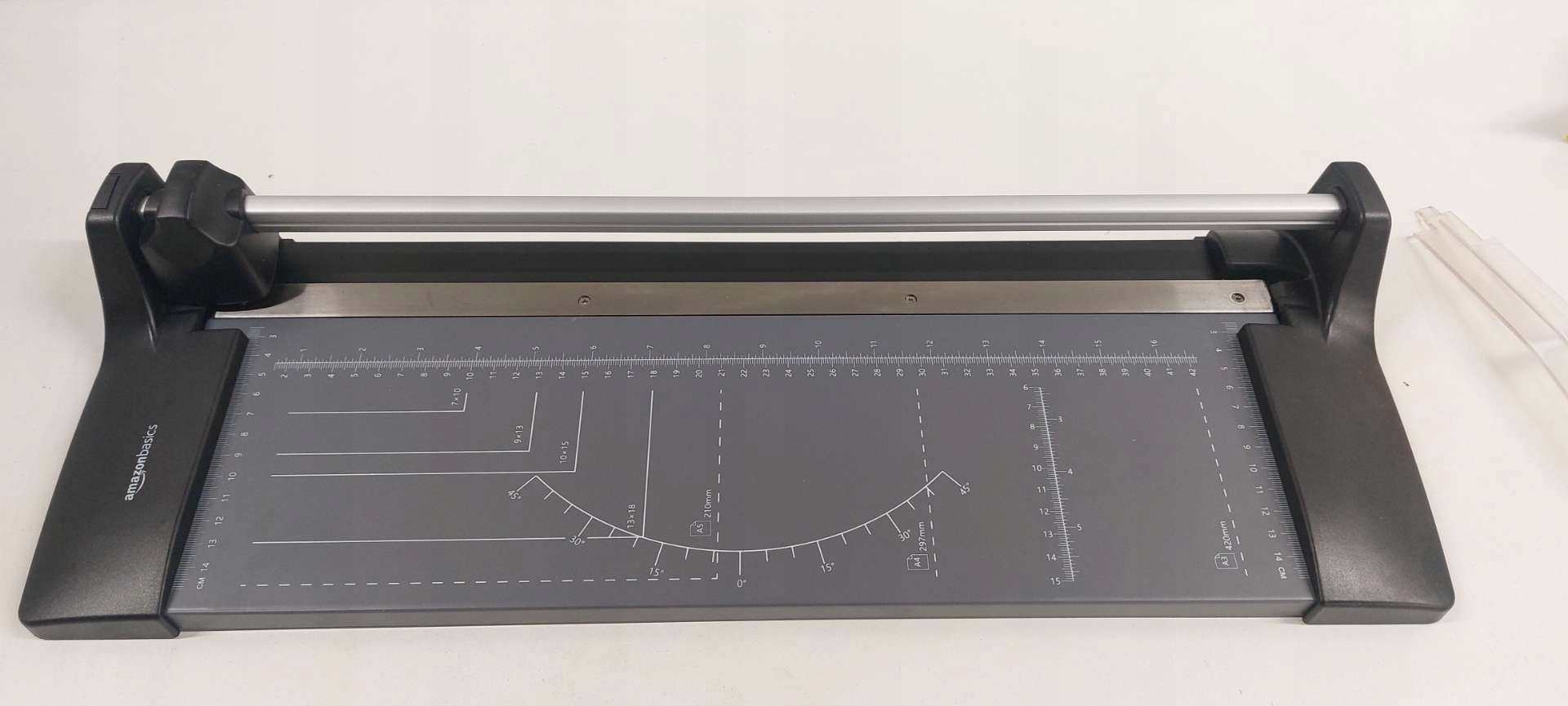 Совет: передайте бумагу под прозрачным защитным рельсом. Установите бумагу в строки A и B (по шкале ниже), чтобы измерить желаемую длину, и нажмите на подкладку на пряжку, чтобы удерживать бумагу. Слегка нажмите на режущую головку к рельсу, и следует помнить, что резкая способность составляет 10 листов 70 г/м².