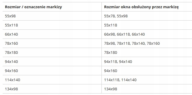 т.е. измерение 55x78, 55x98, 55x118, 66x98, 66x118, 66x140, 78x98, 78x118, 78x140, 94x118, 94x140, 114x118, 114x140, 134x98
