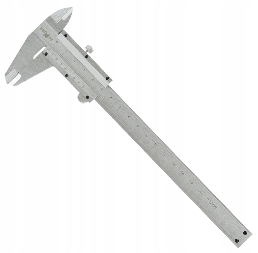 Штангенциркуль 150 мм с точностью измерения до 0,02 мм — измерительный инструмент, используемый в точных работах, требующих точного определения длины предметов. Калипер изготовлен из металла, что обеспечивает его долговечность и точность. Штангенциркуль состоит из двух основных частей: измерительной головки и ножки. Измерительная головка содержит читаемую измерительную шкалу, обычно выгравированную на металлической пластине, и подвижную губку, которая перемещается по шкале. Нога — это длинный плоский элемент, который используется для удержания объекта, длину которого мы хотим измерить. Чтобы провести измерение штангенциркулем, мы помещаем предмет на стопу, а затем зажимаем подвижную челюсть на предмете. Затем считываем значение измерения на шкале, обращая внимание на индикатор, который указывает соответствующее значение на шкале измерения. Максимальный диапазон измерения составляет 150 миллиметров. Благодаря измерительной шкале мы можем считать измеренное значение с точностью до 0,02 мм. Это значит, что мы можем считать измеренное значение с точностью до двадцатых сотых миллиметра.