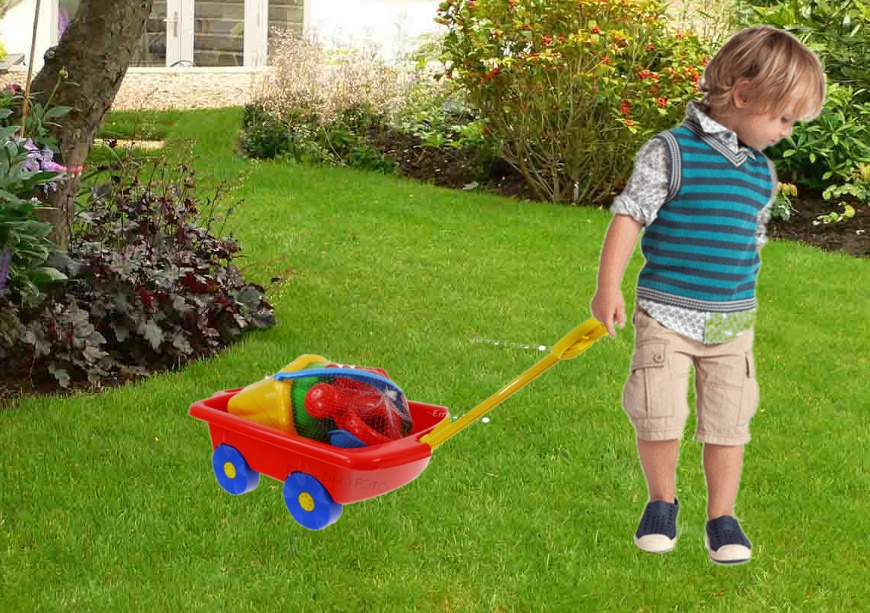 Идеально подходит как коляска для перевозки игрушек, а также тачка для перевозки песка :)