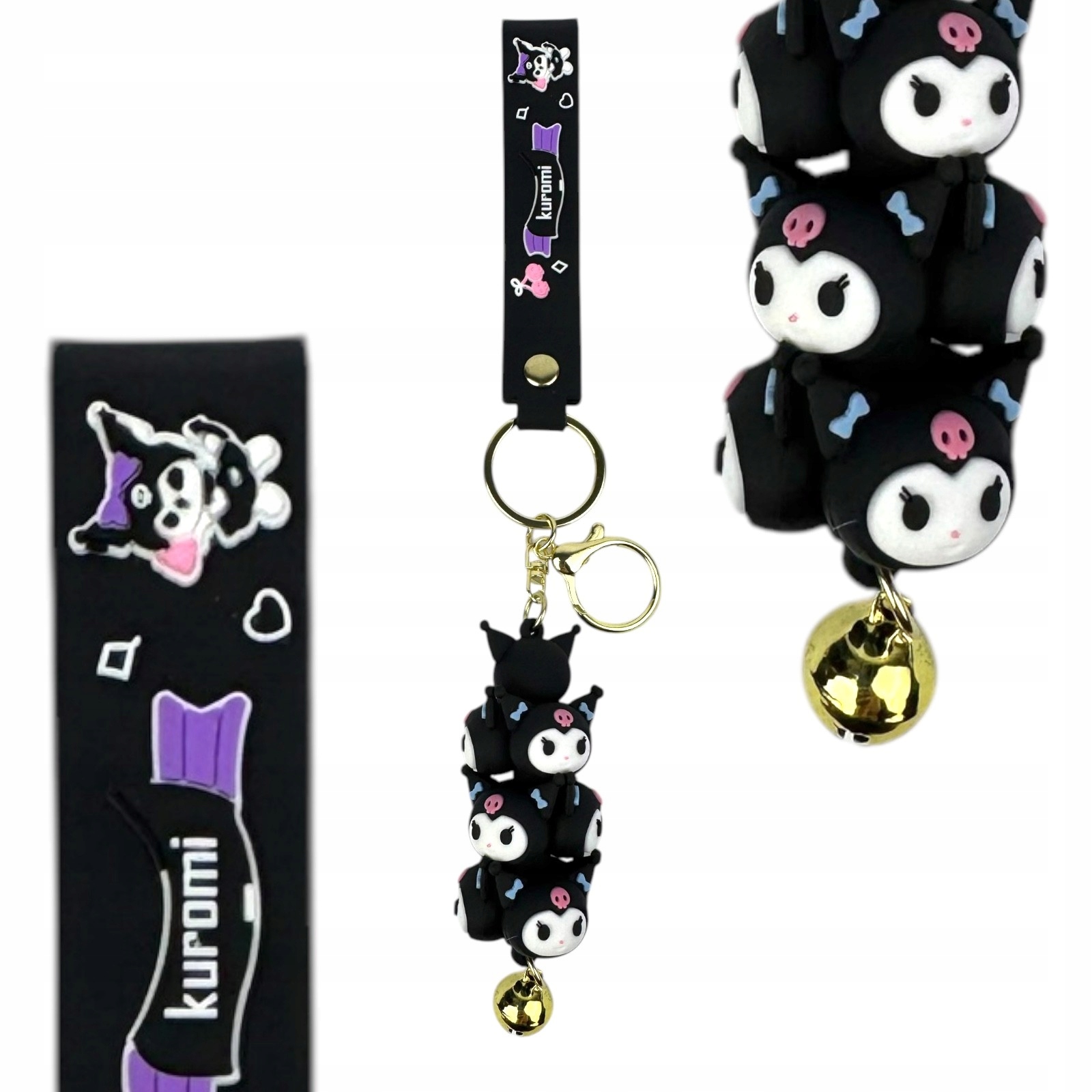3. Кольцо с ключом Kuromi в черном и фиолетовом, с декоративными украшениями и колоколом.