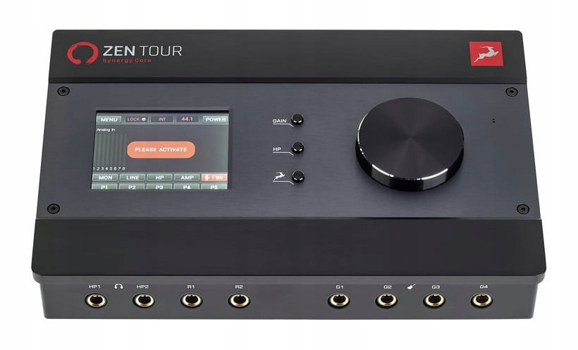 Верхняя панель Antelope Audio Zen Tour Synergy Core имеет сенсорный экран, который используется для настройки параметров, 3 функциональных кнопки и общую регулировку усиления. Аудиоинтерфейс также предлагает 4 инструментальных/линейных входа, 8 линейных выходов, 2 выхода для наушников, 2 входа повторного усилителя, выходы USB 2.0, Thunderbolt 3, вход/выход ADAT, вход/выход RCA, 2 выхода TRS, доступные для подключения. .