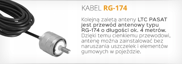 Еще одним преимуществом антенны LTC PASAT является антенный кабель типа RG-174 длиной около 4 метров. Благодаря этому тонкому кабелю антенну можно установить, не нарушая уплотнения и резиновые элементы. в машине.
