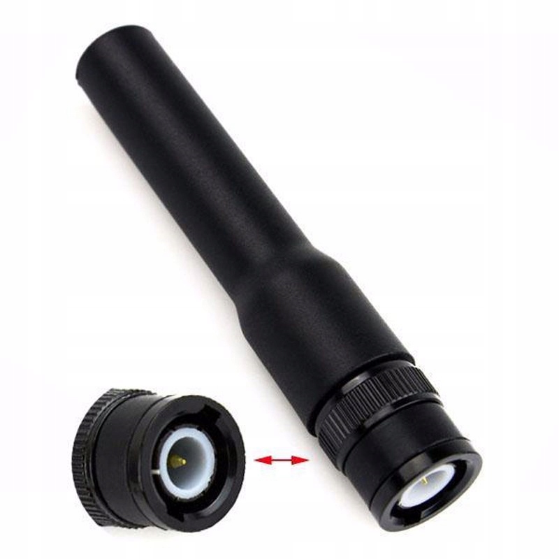 подключается через разъем BNC-M. Интересная антенна, потому что она позволяет вам скрывать маленькое радио в руке, карман, чтобы она не была видно.