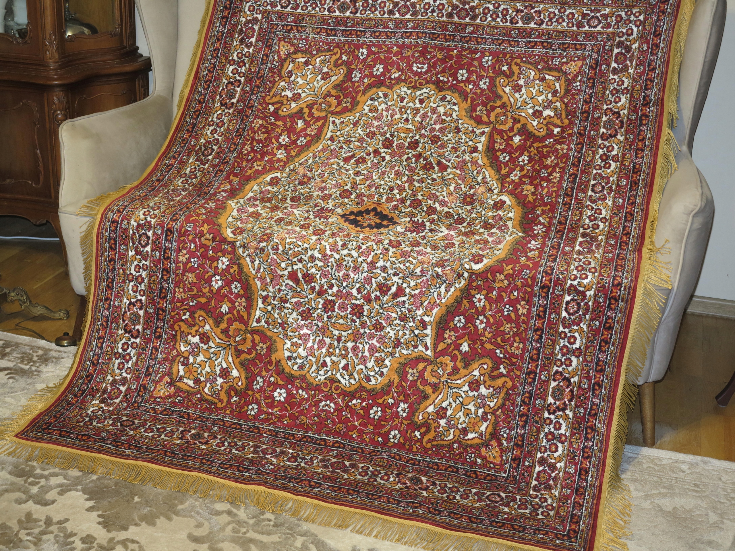 Объект аукциона - антикварная, стильная скатерть или килим из благородного хлопкового бархата, вокруг половых. Ставяная ласточка имеет размеры: 183/144 см плюс примерно на 7 см. Стремление используется в супер хорошее состояние и качество, несмотря на годы. Это будет служить много лет. Я рекомендую