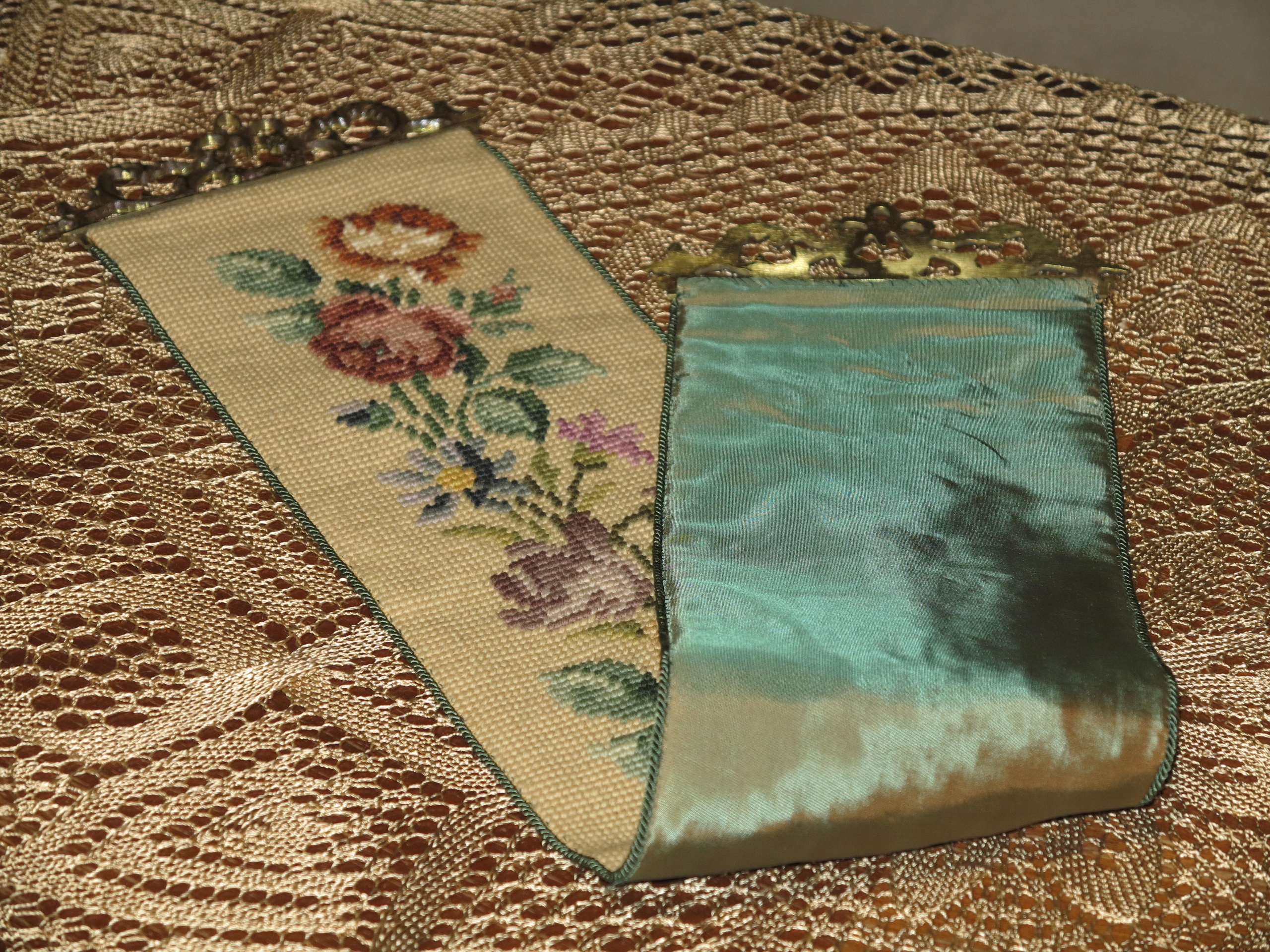 Жемчужный антикварный- красивый настенный пояс из ручной работы с ручной и очень крошечной поперечной вышивкой. Пояс вверху и снизу имеет очень декоративные латунные украшения. Снизу, выложенная с шелковой подкладкой