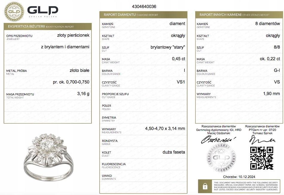 К каждому товару мы прилагаем сертификат подлинности, выданный сертифицированным оценщиком международной геммологической лаборатории IGI.