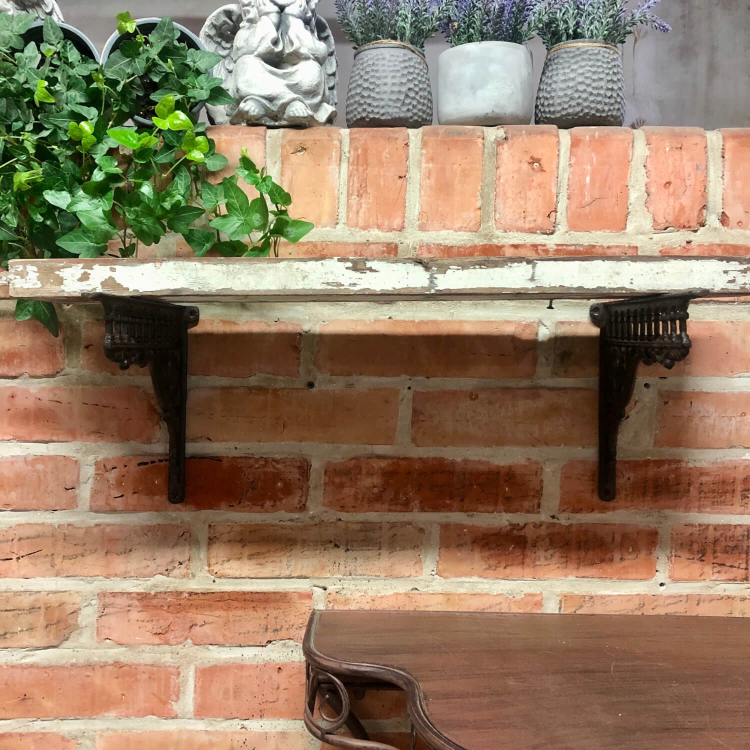 Деревянная полка для кронштейна может быть длинной к краю ручки или слегка выступает и длиннее, чем сами полки, чем полки.
