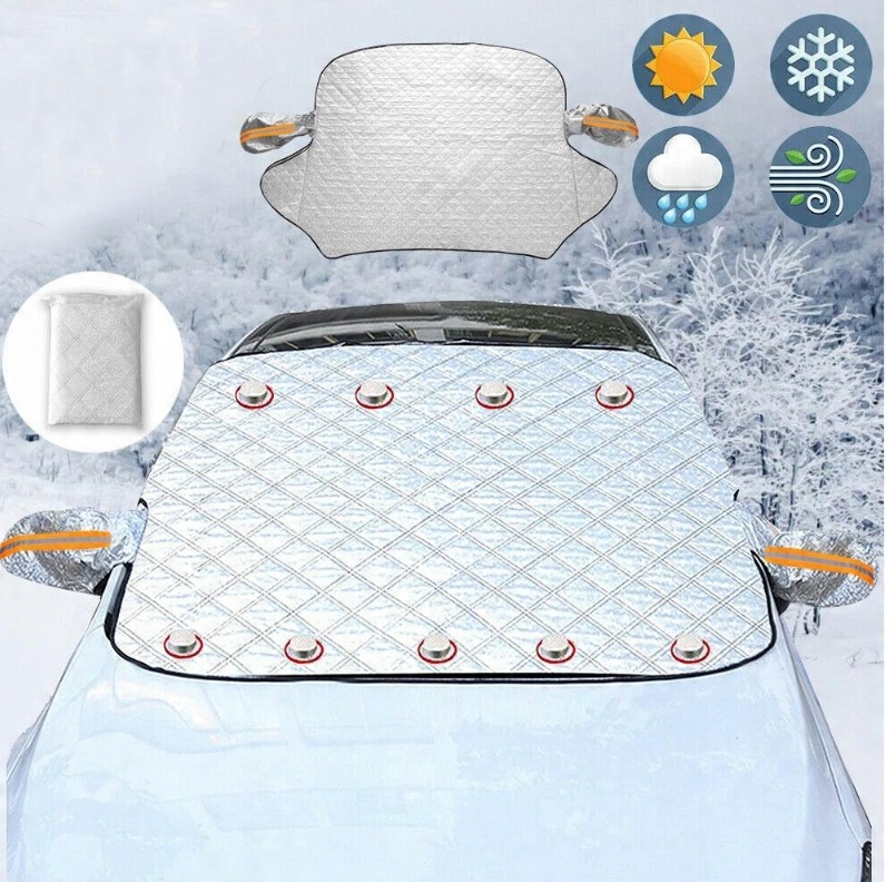 - Полная крышка для ветрового стекла защищает лобовое стекло транспортного средства, дворники, боковые зеркала от снега, мороза и лед. Быстрая и простая установка, экономя время и усилия, отсутствие опрыскивания и соскабливание ветрового стекла автомобиля в замороженный день.