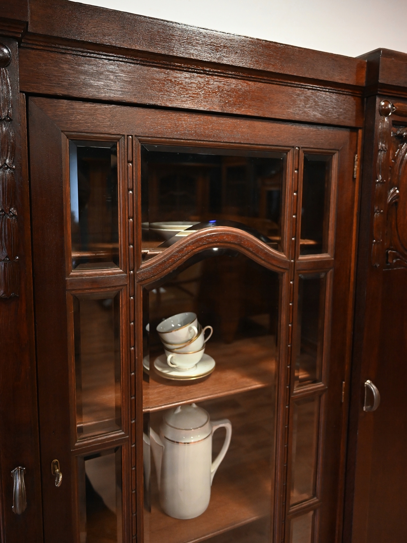 Очень хорошее состояние. Мебель подготовлена для использования. Внешние поверхности и центр мебели были обновлены. Мебель уже имеет свои годы и следы прошлого времени, которое не влияет на его эстетический прием, они являются свидетельством подлинности мебели. Библиотека может быть помещена в квартиру сразу.