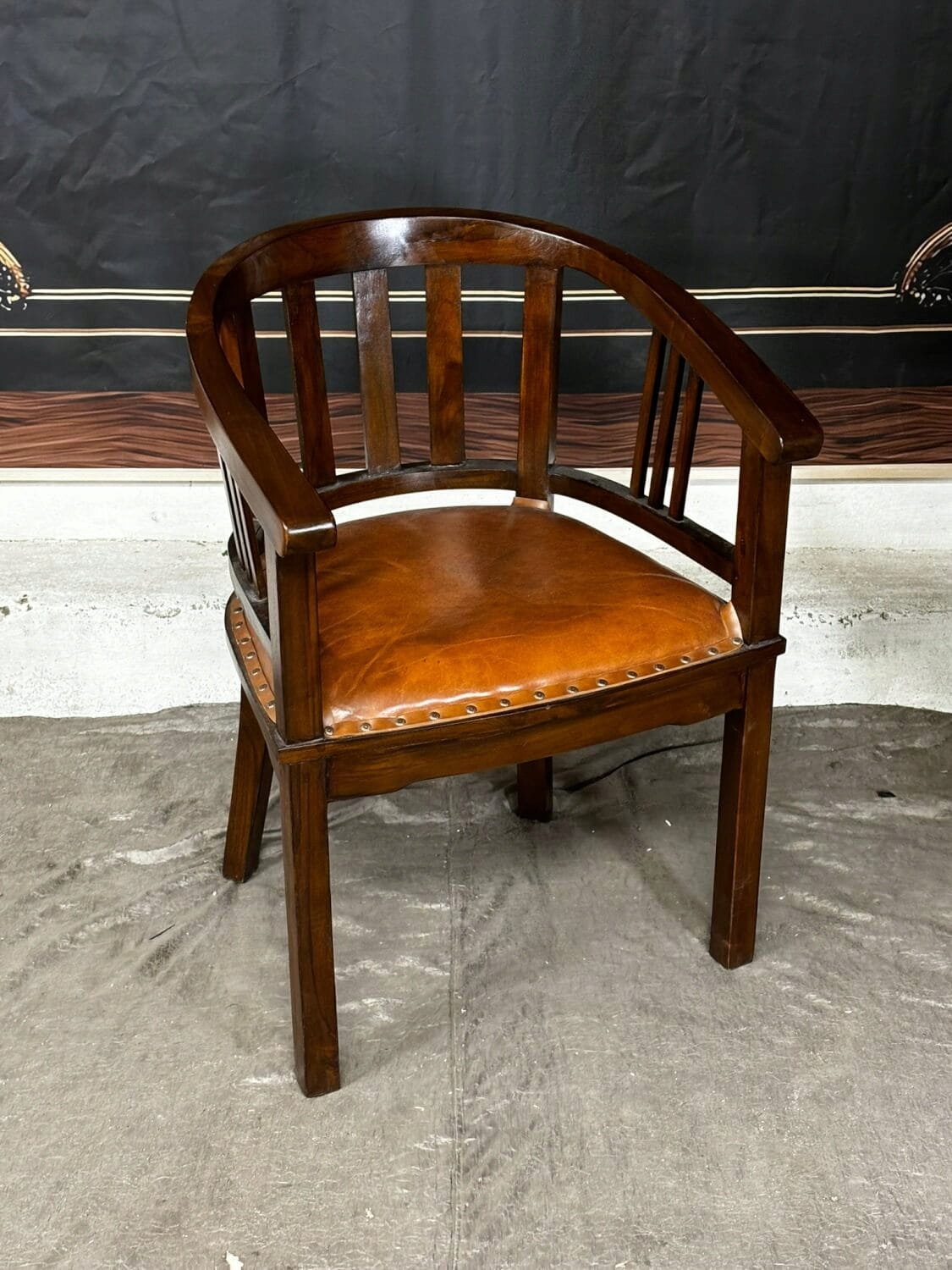 округлые спинки и вертикальные доски напоминают стиль английских клубов. Коньяка кожа добавляет тепло и элегантность. Это набор из 4 клубных стульев с подлокотниками - готова к договоренности.