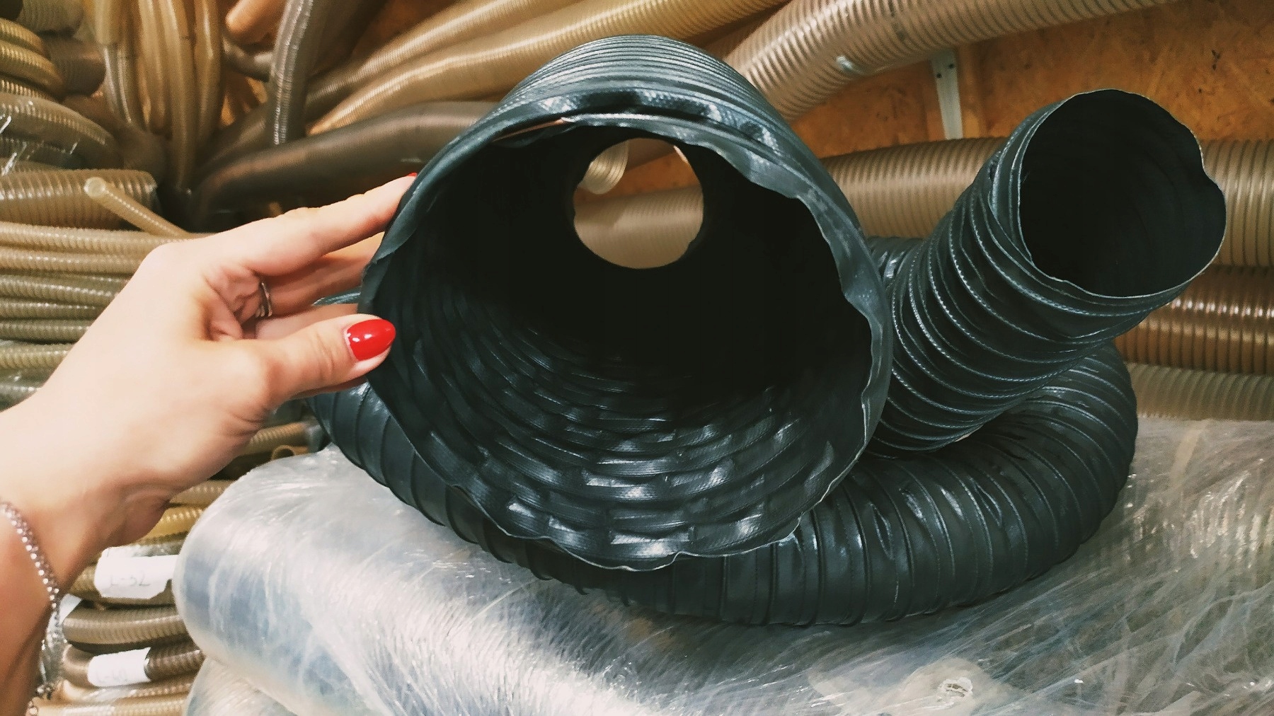 Усиленный шланг из ткани PES, покрытый с обеих сторон. Предназначен для извлечения и удаления газовых сред и пыли в подвижных установках, а также для отвлечения сварочных паров и выхлопных паров. Используется в взрывных зонах из -за повышения антистатической и сложности. Он обладает обширной химической устойчивостью и устойчивостью к гидролизу, поэтому он часто используется в сельском хозяйстве для опрыскивателей, а также в промышленности для транспортировки кислотных паров, оснований и масляных туманов.