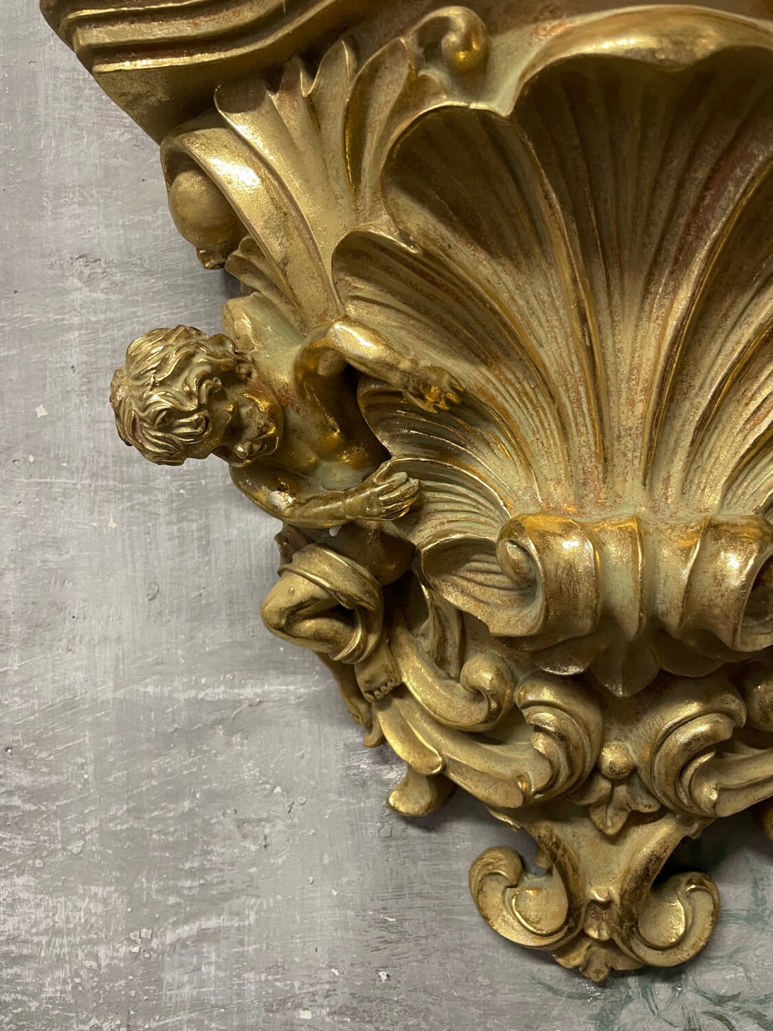 Antki24 - резное полку с золотой стеной с барокко -ангелом