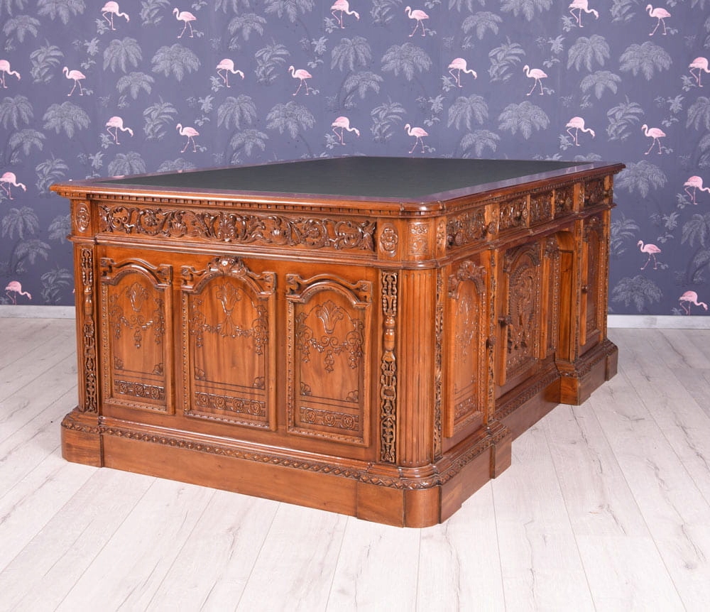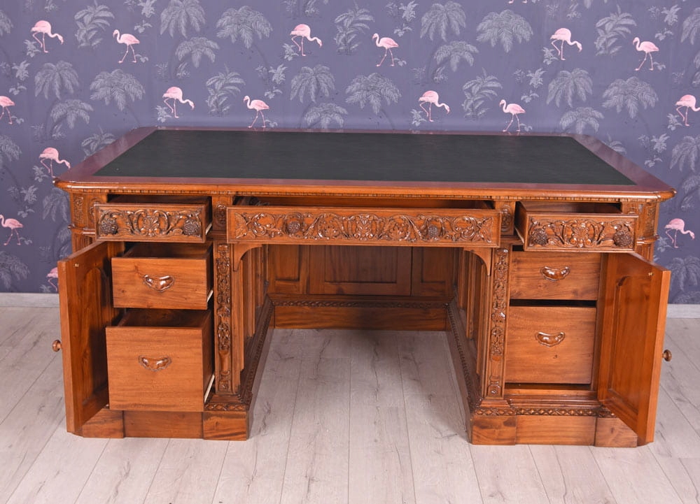 Так -называемый «Партнерский стол», сделанный из твердого дерева из красного дерева, писательская поверхность от высококачественной имитации кожи.