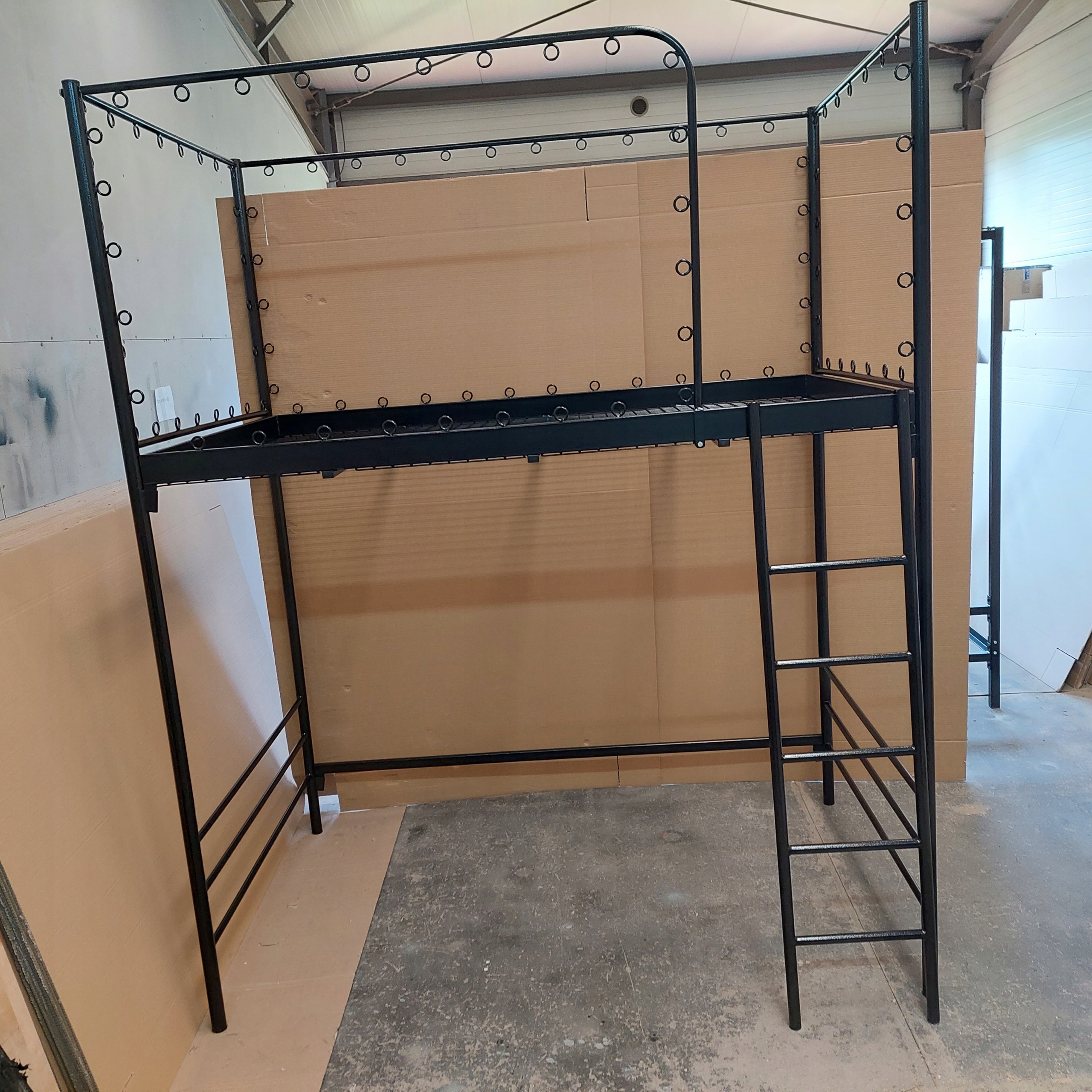 МЕЗОН 140Х200 С СЕТКОЙ БЕЗОПАСНОСТИ ВВЕРХУ, ЛЕСТНИЦА СПРАВА.