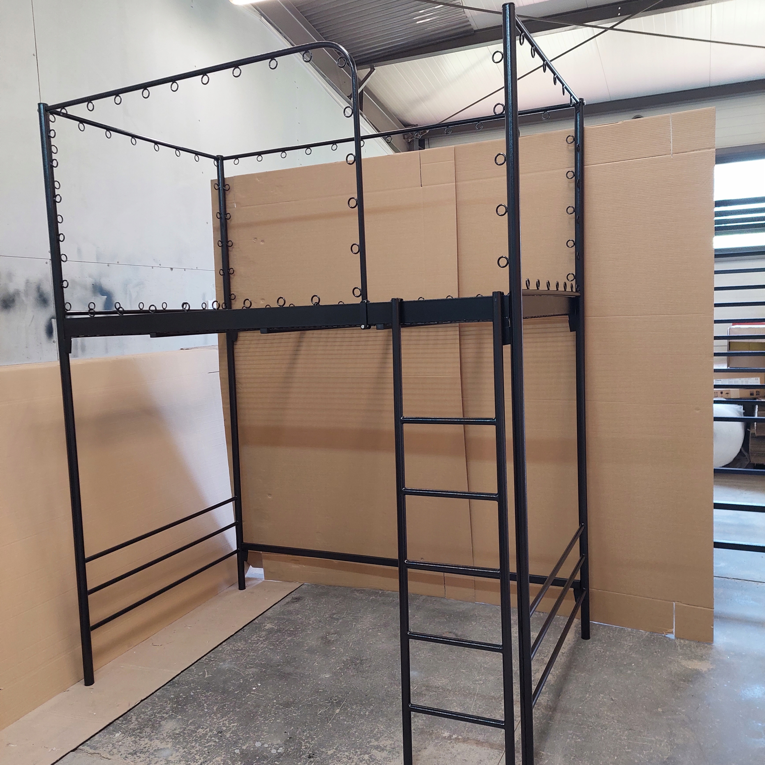 Кровать-мезонин двухъярусная с сеткой под матрас 140х200 изготовлена из круглого профиля фи. 42 мм.