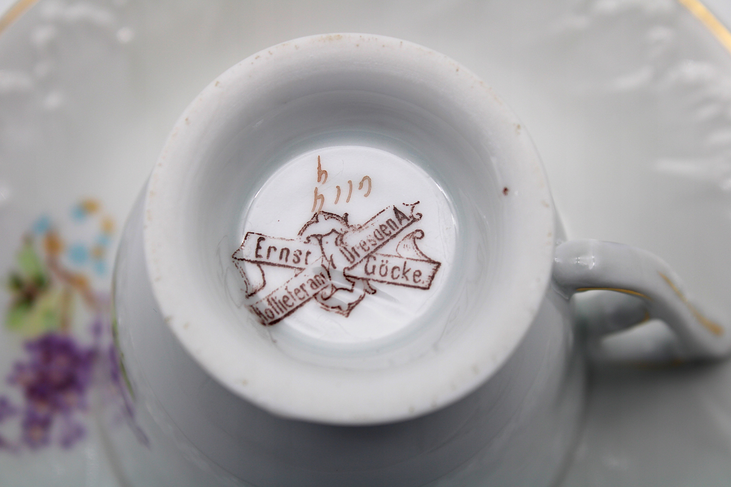 Я РЕКОМЕНДУЮ СТАРЫЙ АНТИКВАРНЫЙ КОФЕЙНО-ЧАЙНЫЙ СЕРВИС ОТ ФАРФОРОВОГО ЗАВОДА ФРИДРИХА КЕСТНЕРА В ОБЕРХОНДОРФЕ, Саксония, ИЗГОТОВЛЕННЫЙ МЕЖДУ 1884 - 1906 ГОДАМИ, ПРОДАННЫЙ ИЗВЕСТНЫМ ТОРГОВЦЕМ ФАРФОРА И СТЕКЛА Г-НОМ ЭРНСТОМ ГОКЕ В ДРЕЗЕНЕ ** В ОЧЕНЬ СОСТОЯНИИ. ХОРОШО КАК ПОКАЗАНО НА СКАНЕ, ИМЕЮТ ЕСТЕСТВЕННЫЕ ВРЕМЕННЫЕ ПОТЕРТЫ НА ПОЗОЛОТЕ И ДЕКОРЕ