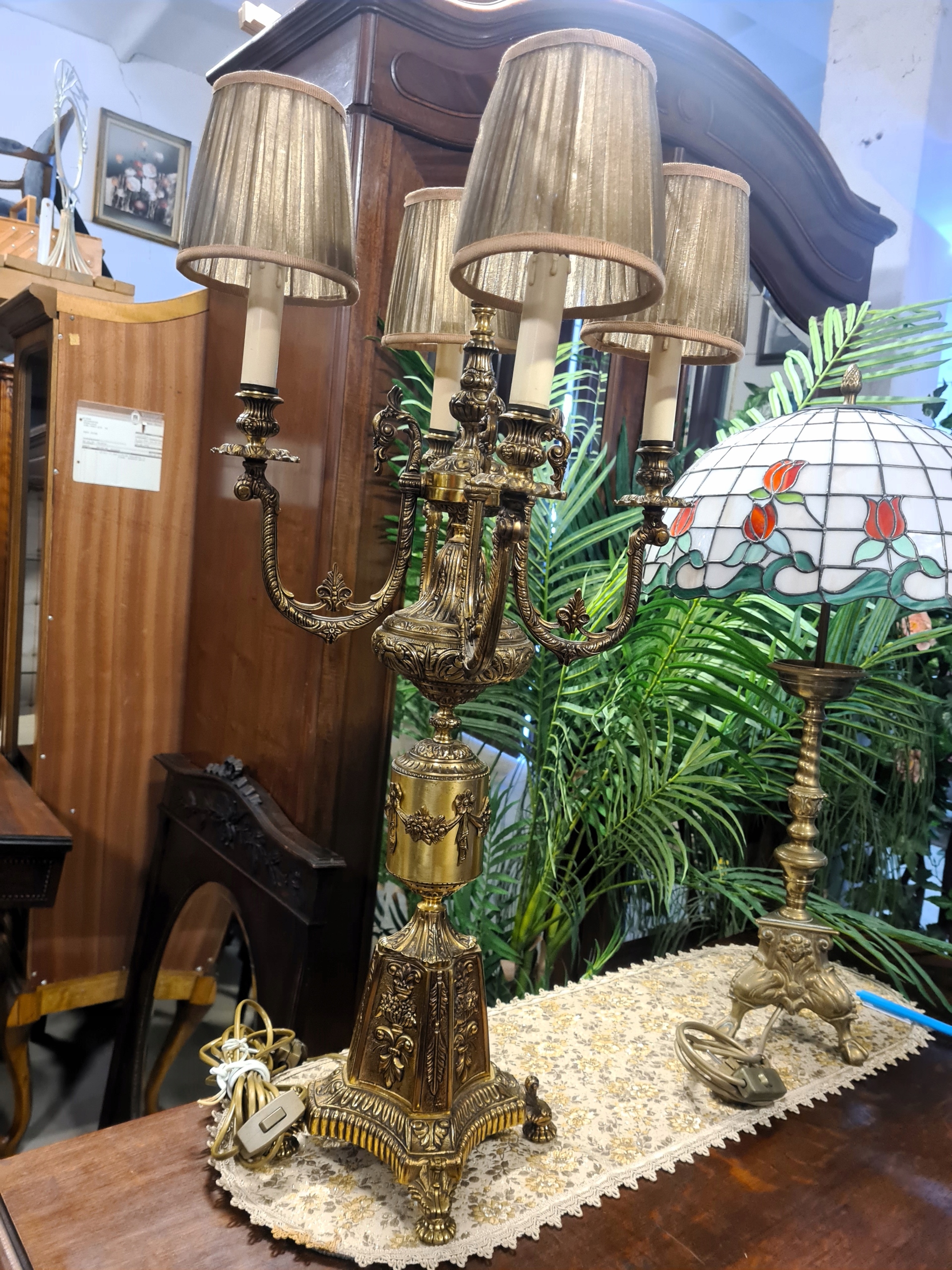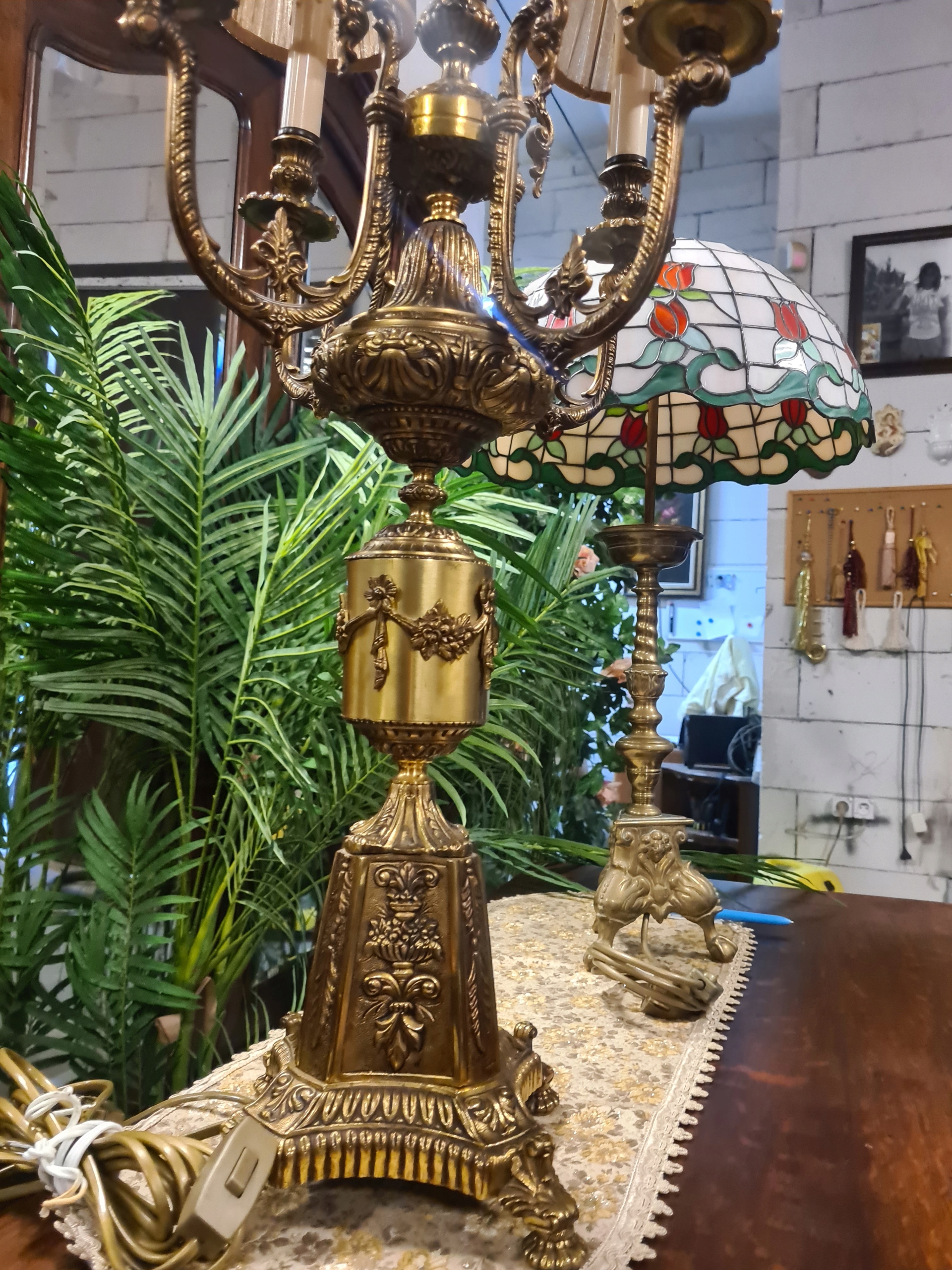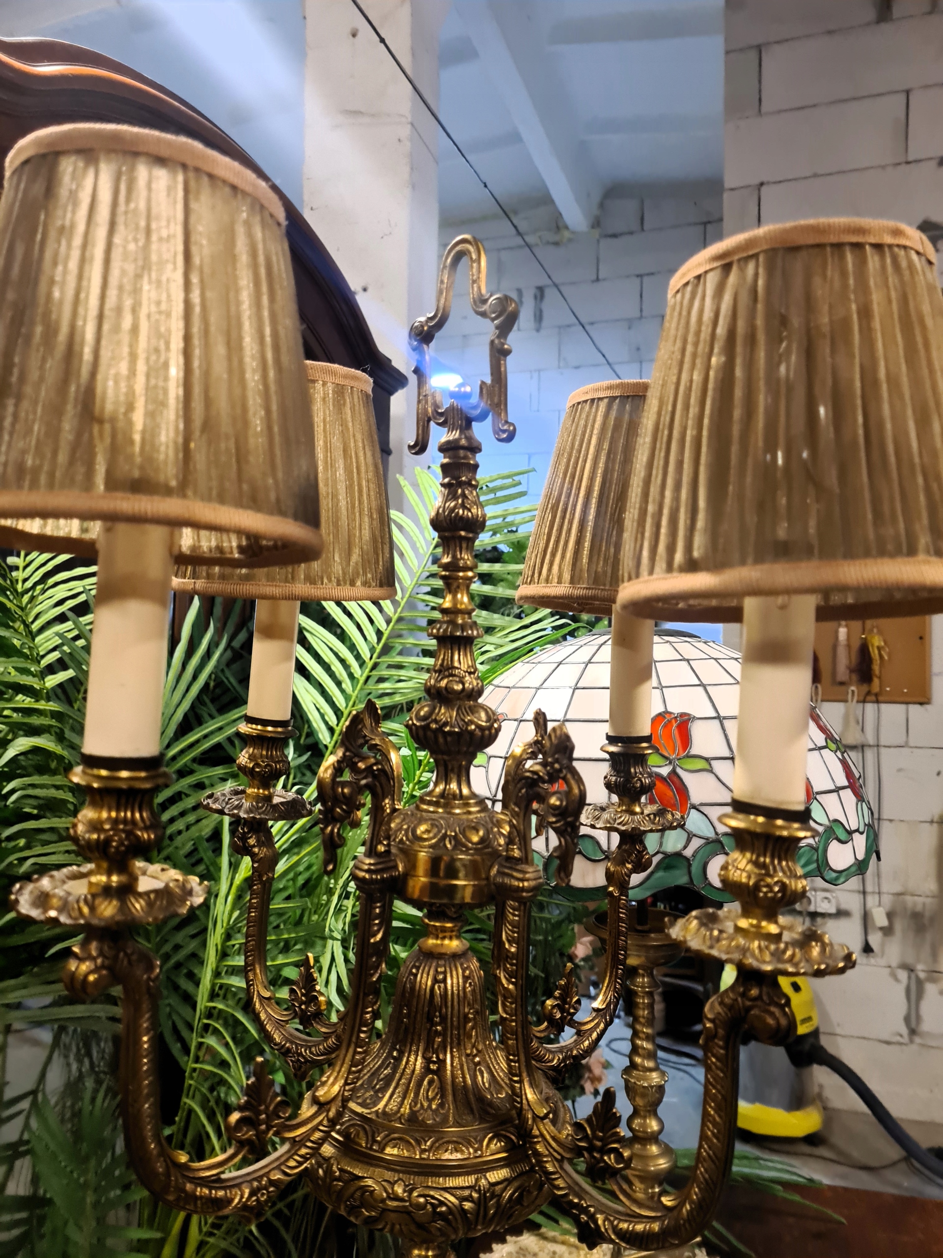 Светильник старинный, высокий, массивный, латунь