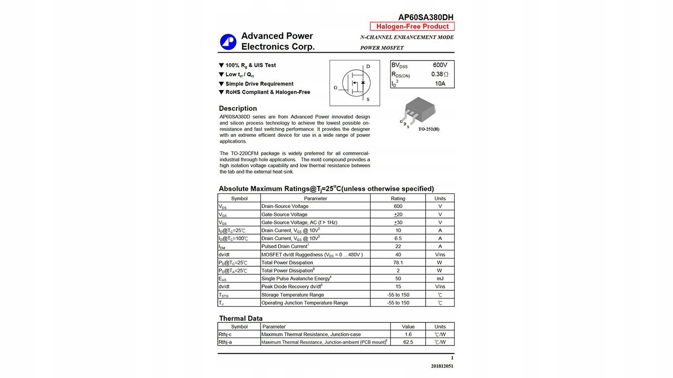 AP60SA380SA3SA380DH до 252 N-канальной системы MOSFET