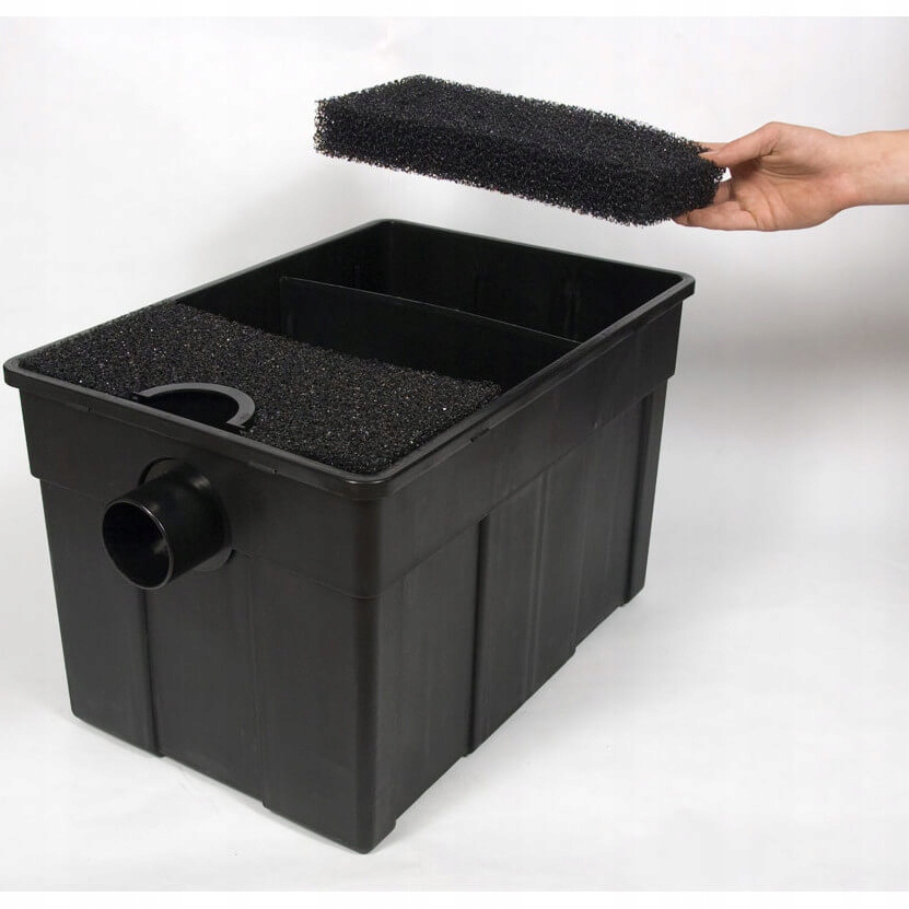 Устройство имеет большую камеру фильтра. Мы находим в нем готовы к использованию фильтров, которые обеспечат комплексную очистку воды. Три губки обеспечивают механическую фильтрацию. Они несут ответственность за остановку всех твердых примесей, таких как фрагменты мертвых растений, помет рыбы или остатки неопределенной пищи. Кроме того, набор содержит Biole , которые являются отличной средой обитания для полезных нитрификационных бактерий. Этот биологический вклад позволяет удалять вредные азотные соединения из воды, что является причиной развития водорослей в пруду.