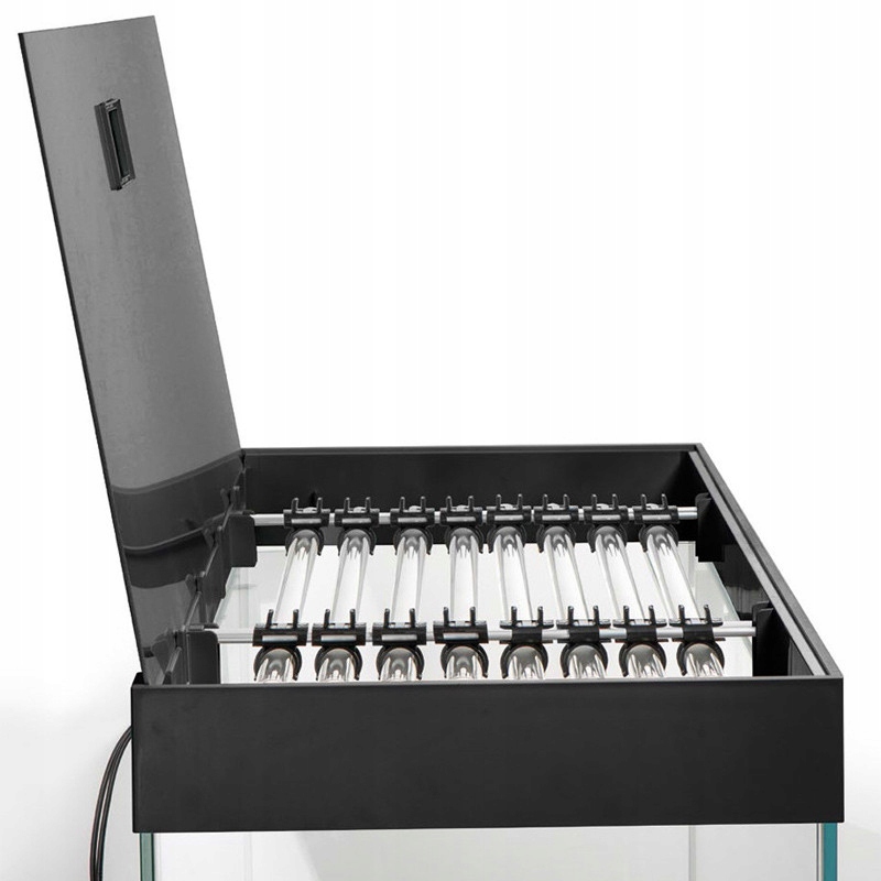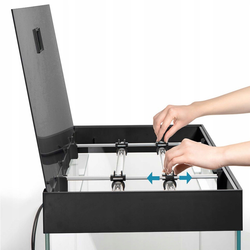 Абсолютной новистью является Инновационная система закрепления лампы , что означает, что набор набора OPTI может быть расширен до 9 модулей . Ручки освещения могут быть свободно перемещены путем освещения области аквариума, на которой мы заботимся больше всего. В то же время был предоставлен свободный доступ к внутренней части аквариума. Это гарантируется: Smart Open на обложке и без поперечного подкрепления. Кроме того, крышка имеет отверстия для сборки, включая внешние шланги фильтров.