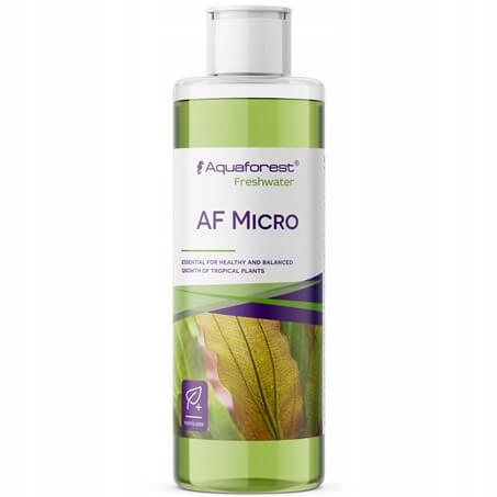 aquaforest af micro Это жидкое удобрение , которое легко растворяется в воде и доступно для всех аквариумных растений. Он содержит полный набор микроэлементов, необходимых для оптимального развития водных растений. Специально разработанная композиция обеспечивает необходимые элементы, такие как: медь, марганца, железо, молибден, цинк, бор. Все в правильно сбалансированных пропорциях. Уникальная формула, содержащаяся в AF Micro, значительно ускоряет рост растений и укрепляет их интенсивные цвета. Микроэлементы участвуют в процессе образования хлорофилла, биосинтеза белка, и во многих биохимических изменениях их недостатки могут привести к многим проблемам. Здесь мы можем различить нарушение процесса фотосинтеза, хлорозы и деформации листьев, кроме того, недостатки могут привести к ингибированию роста и развития. Вот почему так важно регулярно дополнять микроэлементы в воду, особенно в высококлассных заводах.