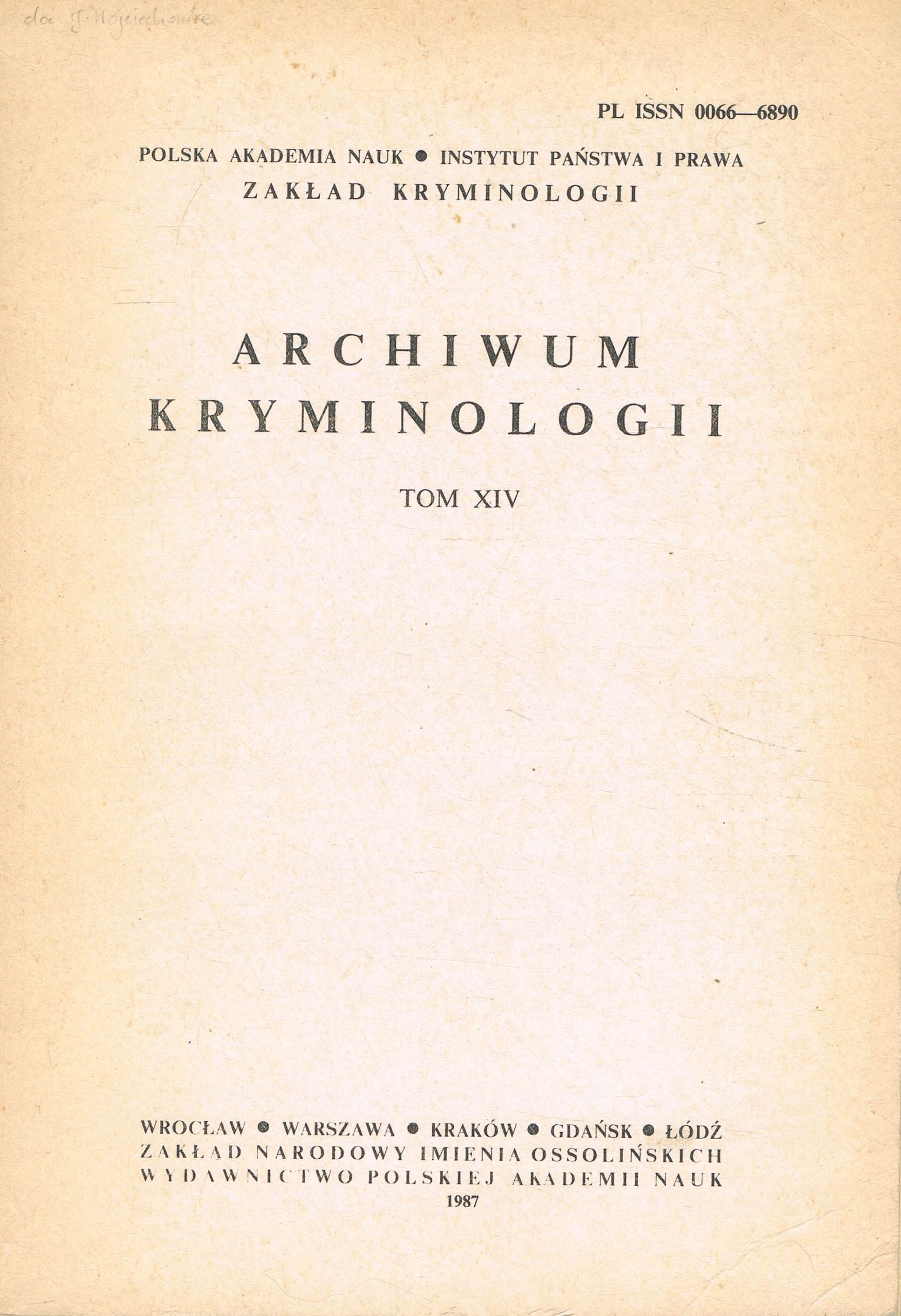 ARCHIWUM KRYMINOLOGII TOM XIV 1987