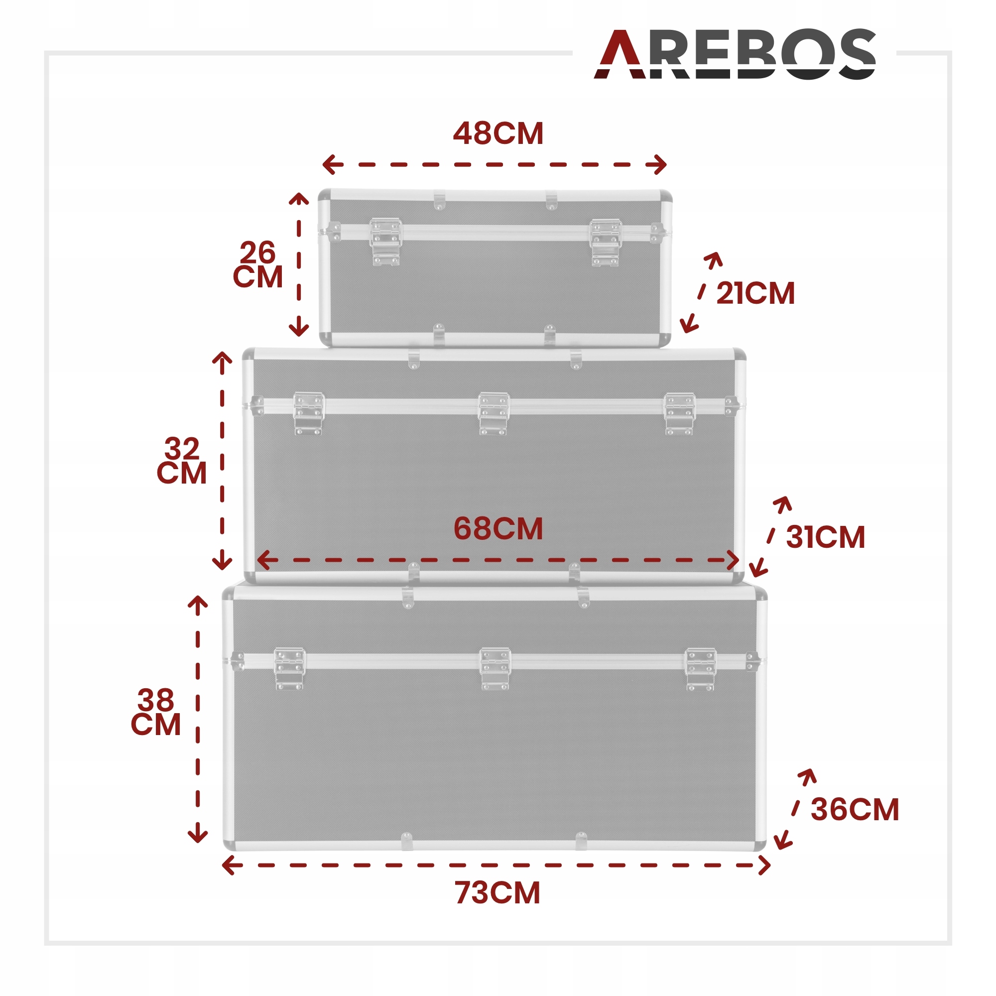 [универсальное использование] Полезный, твердый алюминиевый набор чемоданов 3 штуки для использования в мастерских, автомобилях, складах, офисах или для проведения свободного времени. | Общая мощность 200 л предлагает много места. | Сплошная конструкция из -за трехслойной системы. | Индивидуальные и безопасные варианты для хранения ценных предметов, таких как инструменты или измерительные устройства с дополнительным оборудованием, ноутбуками, ноутбуками и другими аксессуарами, а также документы, монеты и другие расходные материалы.