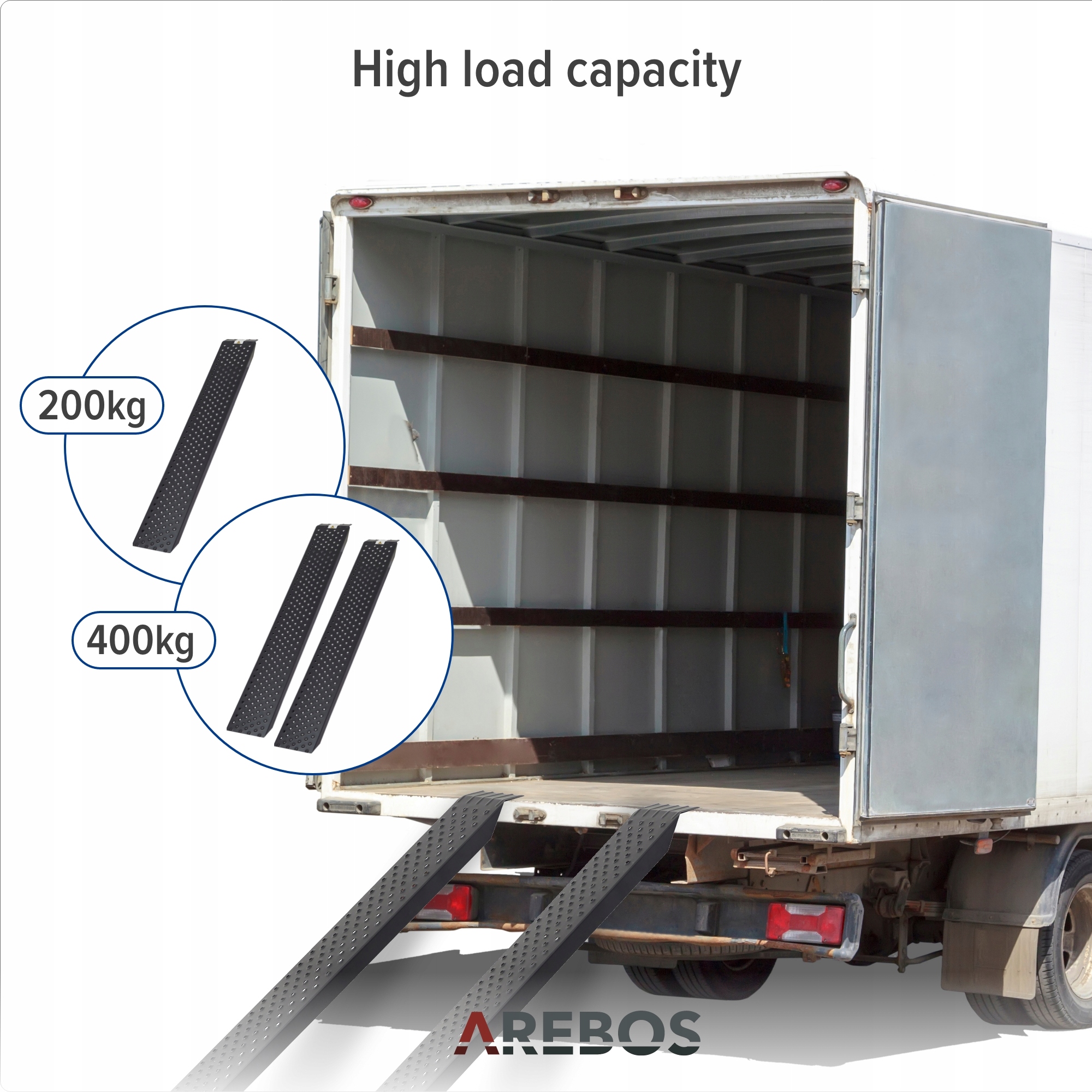 [свет] Две рампы изготовлены из высококачественной оцинкованной стали, которая устойчива к ржавчине и имеет долгий срок службы. Каждая рампа может быть загружена до 200 кг, общая грузоподъемность для обоих рампы составляет 400 кг.