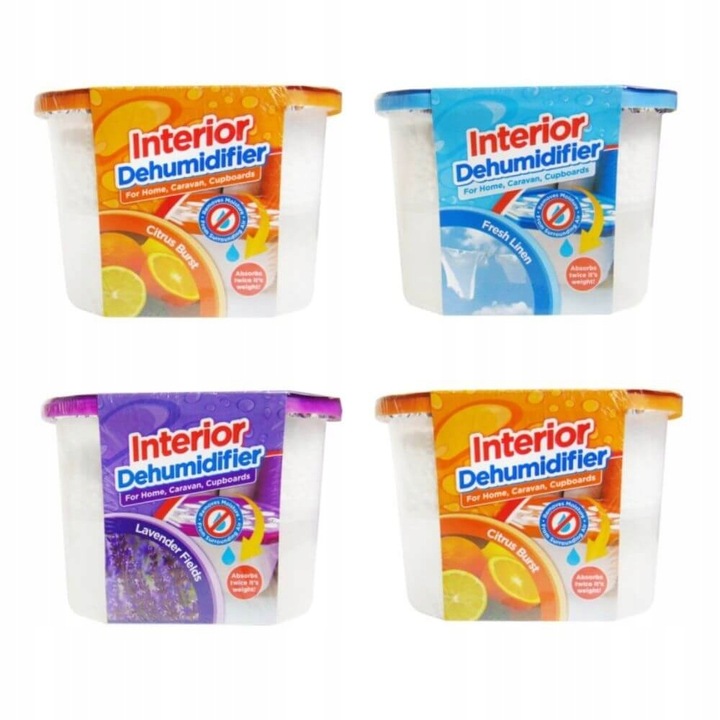 Ароматизированный поглотитель влаги используется для сбора излишнего количества воды и осушения помещения от излишней влажности. Изготовлен из пластика, содержащего гранулы, впитывающие влагу из воздуха. Гранулы постепенно снижают свою эффективность, и когда они заканчиваются, их необходимо заменить – это время зависит от воспринимаемого уровня влажности в помещении, в котором он находится.