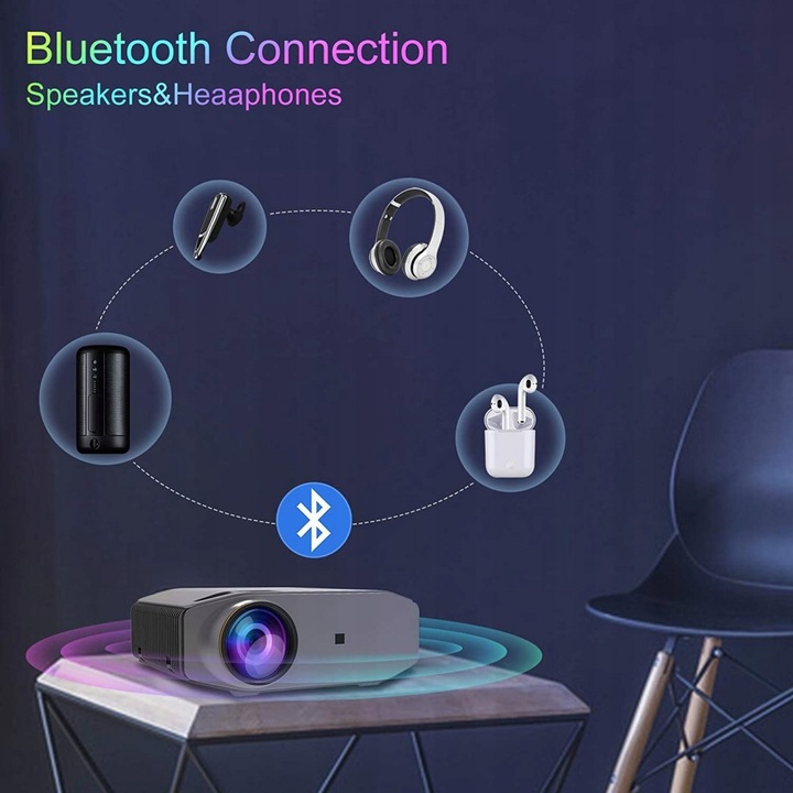 Enriched o Производительный чип Mstar и технология TFT LCD, намного ярче и красочнее, чем другие проекторы 1080p WIFI Bluetooth, цветовая шкала имеет высокий уровень NTSC и предлагает до 17 миллионов цветовых диапазонов, может отображать 100% цвет. сигналы RGB для каждого изображения. Обновление обеспечивает беспрецедентные впечатления от просмотра фильмов.