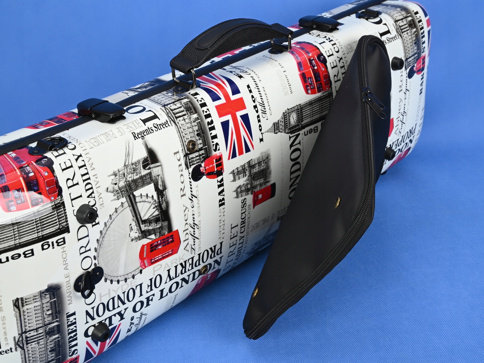 Легкий, прямоугольный случай скрипки, сделанный из поликарбоната и ABS составной. Набор включает в себя скобки на задней панели и сумку для заметок, прикрепленных к делу скрипки с защелками. Корпус в версии и может быть закрыт с замками шифра. Различные цвета с текстурой ткани плетения или имитацией волос. Поверхность случая скрипки, покрытой слоем поликарбоната, делает его менее чувствительной к механическим повреждениям, чем ламинаты из стекловолокна. Однако для поддержания красивой блестящей поверхности требуется забота о использованном корпусе