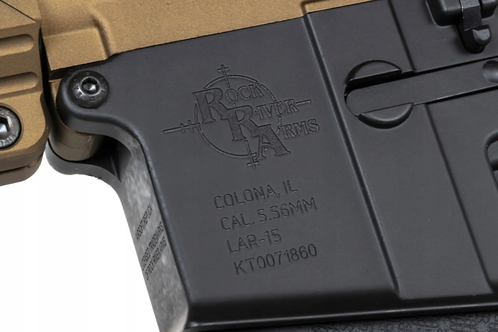 Реплика имеет полную, лицензированную маркировку Производитель огнестрельного оружия - Рок -Ривер Армс . Это американский производитель запчастей и аксессуаров для оружия, но, прежде всего, высококачественные карабины из оружия AR-15. Компания, основанная в 1996 году Братьями Ларсона, в компанию с Les Baer, базируется в Колоне, штат Иллинойс. Сегодня RRA предоставляет свои винтовки для контракта, среди прочего для антикартотических агентств DEA, ФБР или маршалов США.