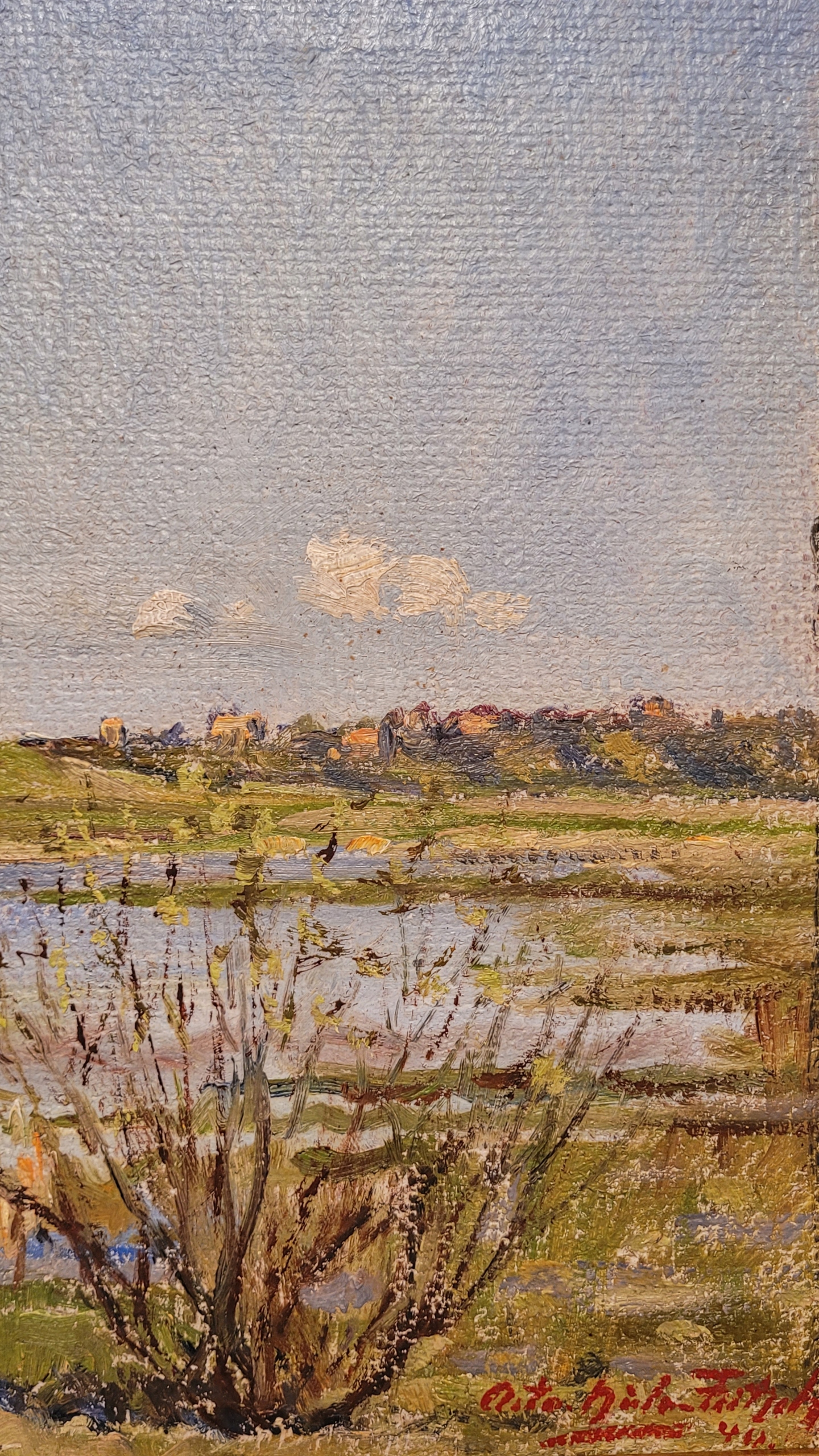 Аста Нильсен Фрич (1881-1972) -«Пейзаж с водно -болотным угодьем», изображение нефти -1940