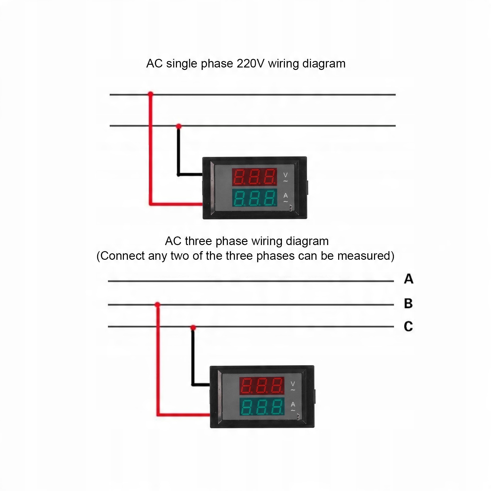 4. Проводка: Красный кабель приводит к положительному полюсу, а черный провод приводит к отрицательному полюсу. Особенности: Хорошая стабильность, высокая проверка измерения, удобное чтение, установка ATWA и проскальзывание