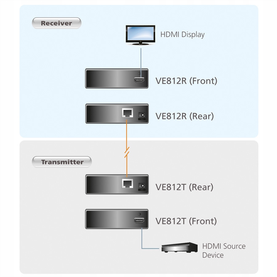 благодаря расширению сигнала HDMI для кабеля одного кота. 5 VE812 Вы можете разместить отображение HDMI до 100 м из источника сигнала. Это расстояние может быть легко мост с недорогим кабелем для кошек. 5e.