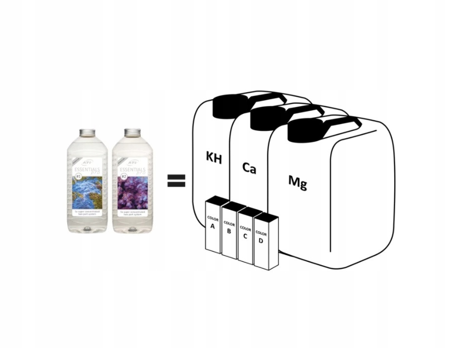 Essentials Pro - это система революционной помощи. Наш опыт работы с более чем 20 000 анализов морской воды позволил нам оптимизировать рецепт успешных предметов первой необходимости. Essentials Pro поставляет не только все основные элементы аквариума (включая KH, CA и MG), но и все необходимые следовые элементы (например, железо, йод, молибден, марганец, ванадий и цинк) и помогает постоянно держать их в оптимальном диапазоне концентрации.