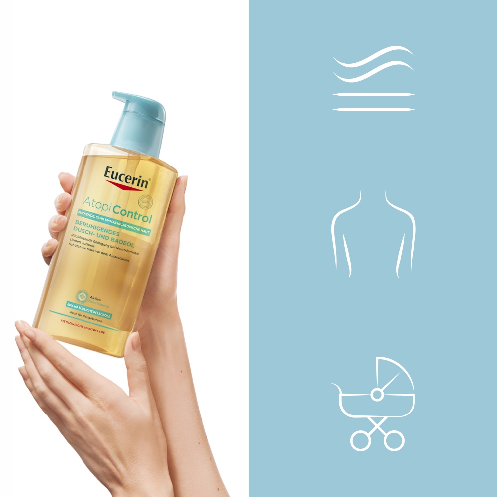 eucerin atopicontrol -это успокаивающее, без запаха масла для моделирования тела с маслом омега -3 и -6 для атопической кожи. Еусериновое душ масла: