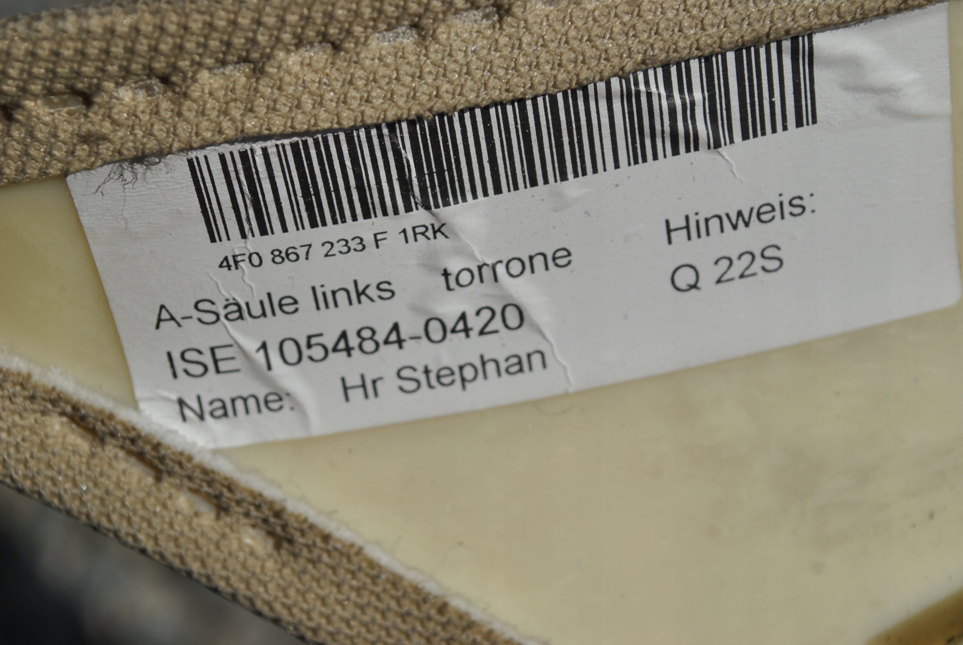 AUDI A6 C6 ПЛАСТИКОВАЯ ОБИВКА СТОЙКИ БЕЖЕВЫЙ TORRONE