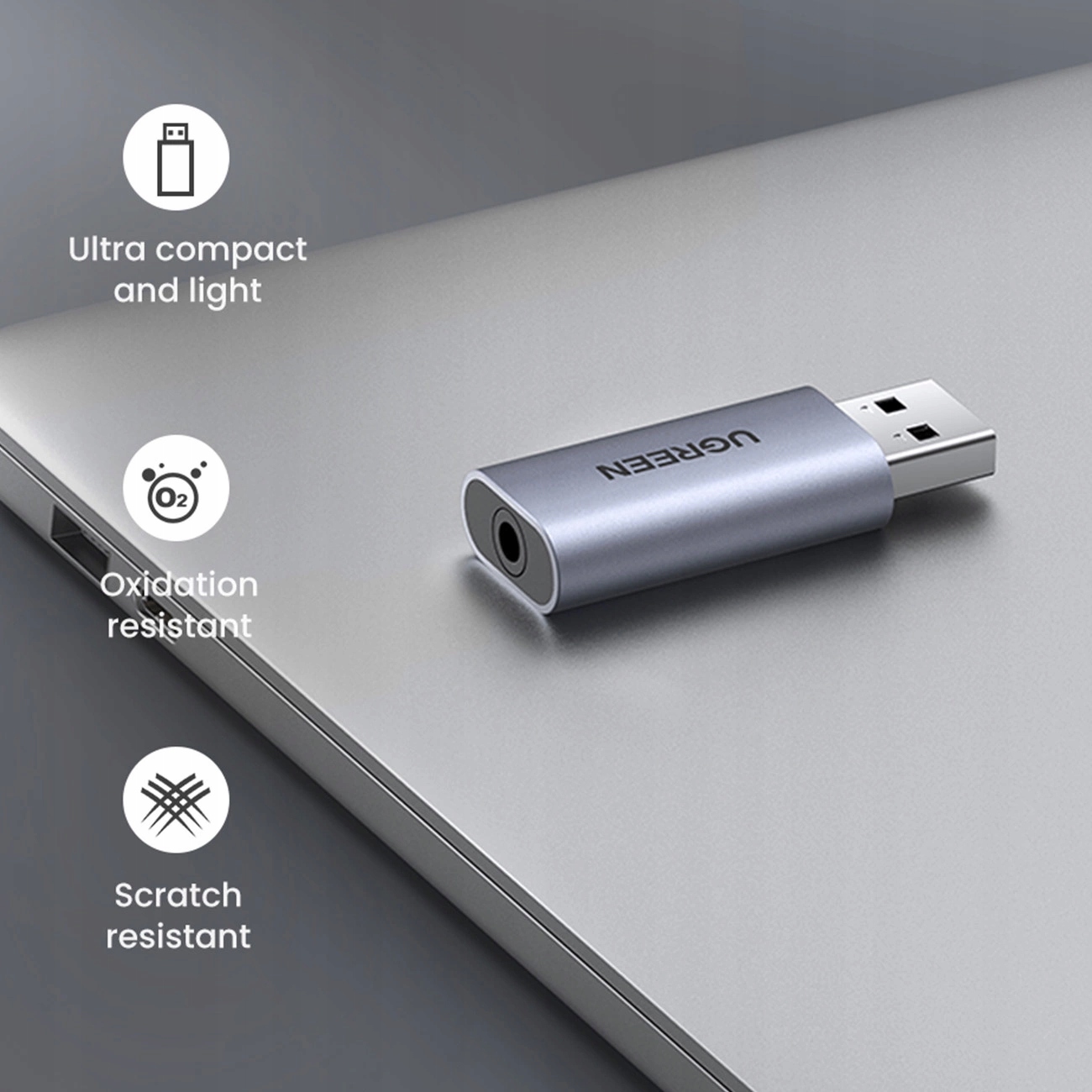 обеспечивает звук без каких -либо помех или искажений. Адаптер Ugreen CM383 гарантирует чистый и стабильный звук в любом месте и времени Работайте с каждым USB Audio Standard