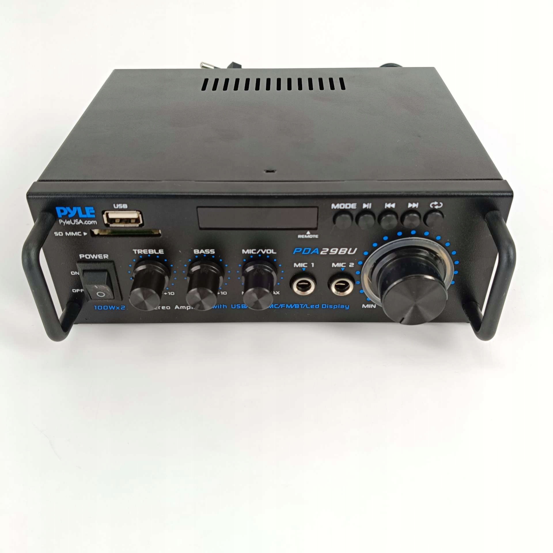 Функции: компактная и эффективная система мини -усилителя Bluetooth -приемника для беспроводной передачи звука RCA (L/R) Audio Input USB/SD/FM Подключить и транслировать звук с внешних устройств. Громкоговорителям громкоговорителей давления L/R . : Отношение сигнала 0,1% к шуму: 75 дБ шнур питания