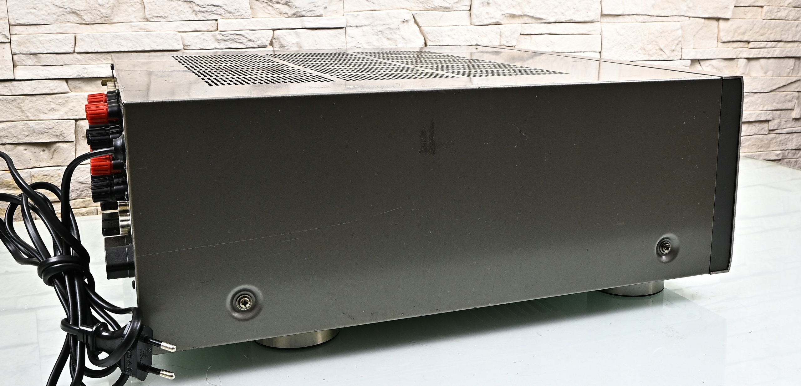 Основные технические данные: 5 входов (в) Аудио: фоно, CD, тюнер, лента 1, лента 2; 6 входов (в) аудиовидео: LD, TV/DBS, VCR 1, VCR 2, VCR 3, AUX; 2 выходы (OUT) AUDIO: лента 1, лента 2; 3 выходы (OUT) Audio-Video: VCR 1, VCR 2, VCR 3; 1 выходы (Out) Мониторинг; Все видеорологии оснащены видеопонъектами (Cinch Composite) и S-Video; Аудиорегулирование: объем, бас, тройные, баланс; 16 режимов звукового процессора, все настраиваемые; OSD; Размеры в мм (S × in × g): 435 × 170,5 × 468,5; Вес: 21 кг; Питание: 230 В; Энергопотребление: 350 Вт;