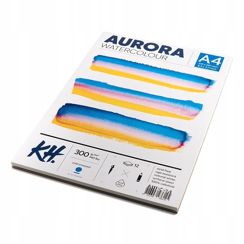 бумажный блок Aurora, предназначенный для акварельных красок. 12 листов из тонкой бумаги, сделанной из 100% целлюлозы. Большой вес 300 г/м² позволяет создавать «влажную влажную» в технике. Бумага устойчива к стиранию и очень хорошо подчеркивает легкость акварельных красок. Листы кислые и архивные - приклеены на короткой стороне. Это также отличная бумага для гуашью, акриловых красок и работы, выполненной с карандашом и чернилами.