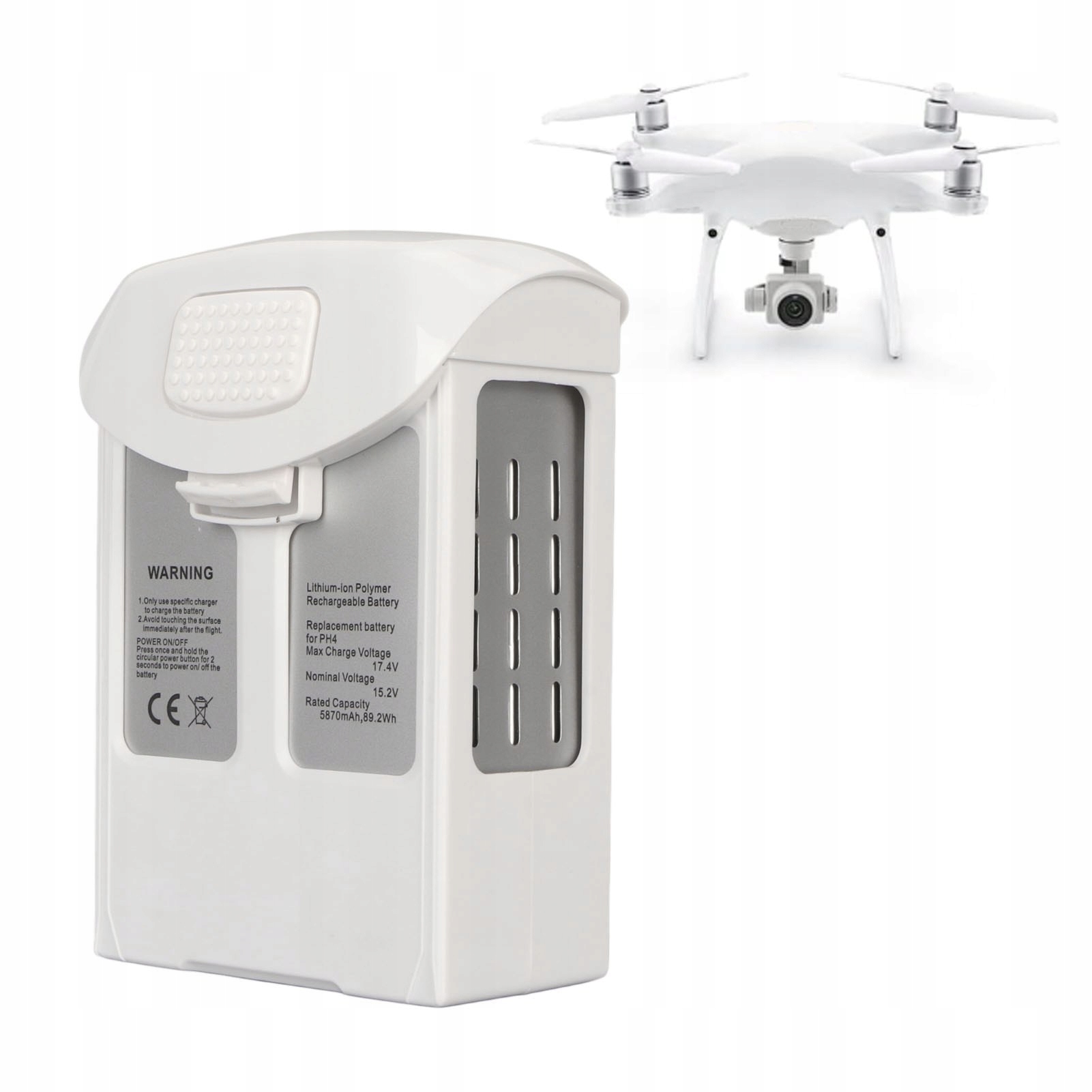 2. Аккумулятор 5870 мАч: эта воздушная батарея для Phantom 4 имеет емкость 5870 мАч, что является идеальной заменой для серии Phantom 4, обеспечивая оптимальную производительность.