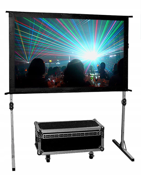 - Удобный черный чемодан на колесиках облегчает транспортировку и переноску экрана.