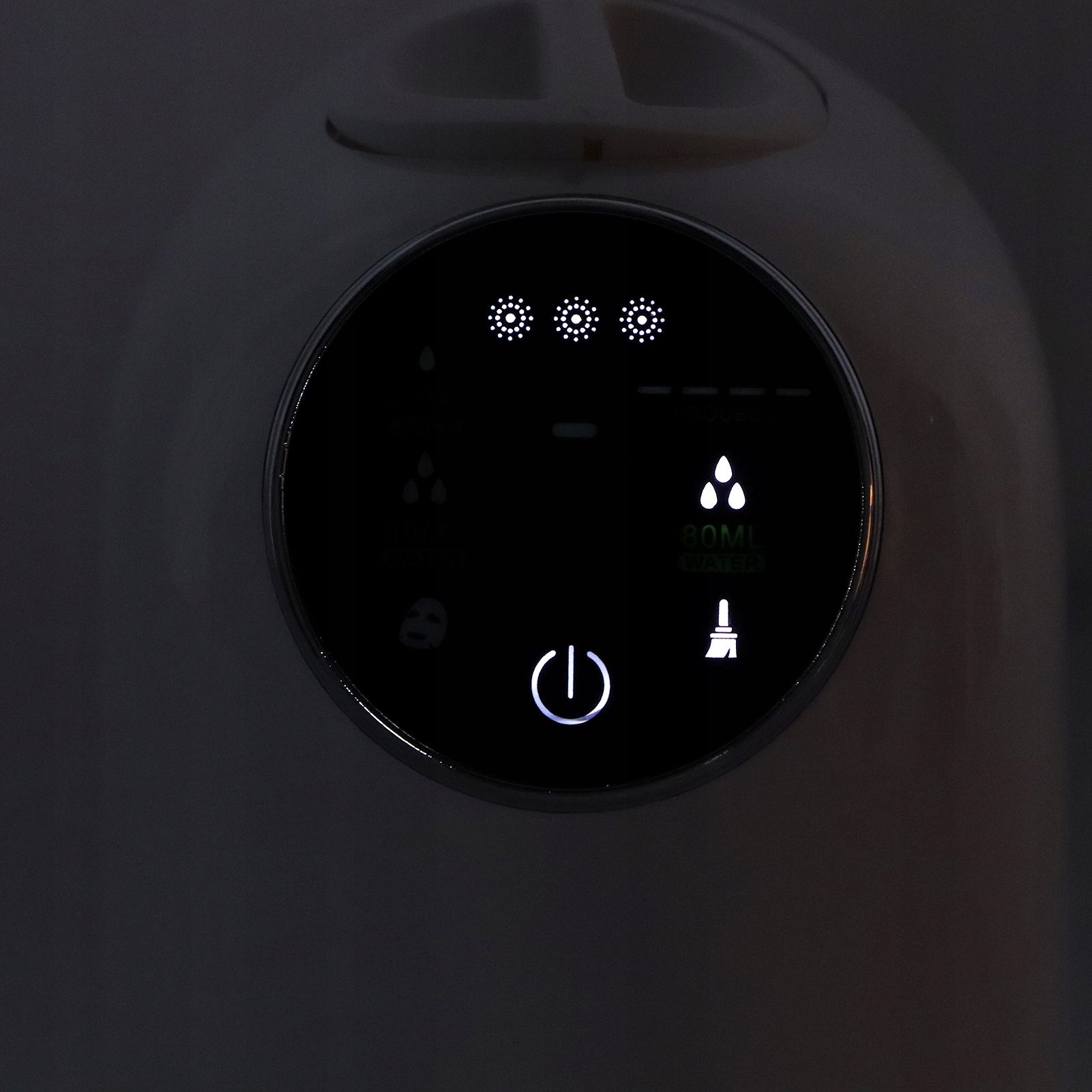 - 2. Нажмите кнопку питания в течение долгого времени, чтобы включить машину в маске, добавление индикатора 60 мл воды будет освещаться, и звучит зуммер.