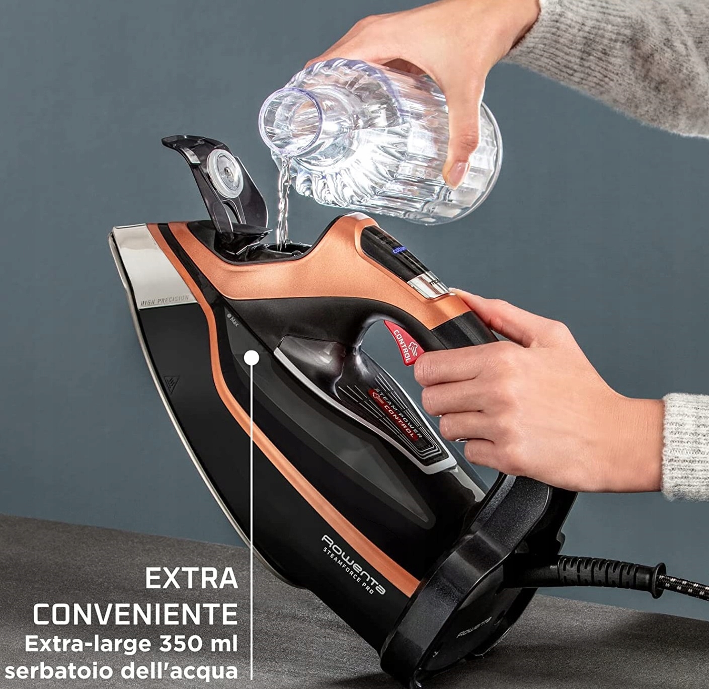 Откройте для себя высокопроизводительный паровой утюг с мощностью парогенератора и насосной системой, которая подает в 2 раза больше пара ткань (по сравнению с Rowenta VR5121 (2400 Вт), по сравнению с утюгом без помпы серии Rowenta DW53)