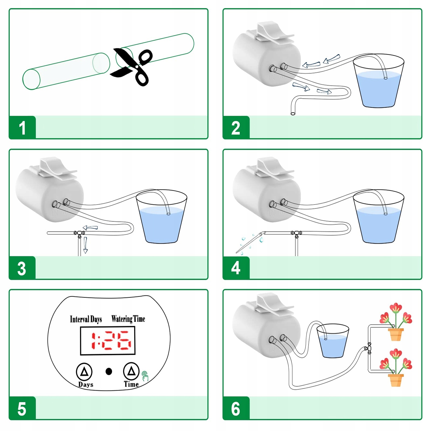 - -Просто установите временной интервал (от 1 часа до 60 дней) и объем подаваемой воды (от 10 мл до 990 мл), и после программирования эта автоматическая система полива растений будет поливать ваши растения. для вас.